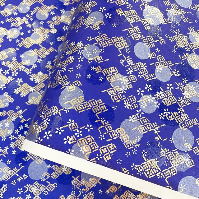 華やかな友禅紙 YUZEN dyeing 月明り 菱型紋様に丸 明るい青 大判 菊判 約63x93cm