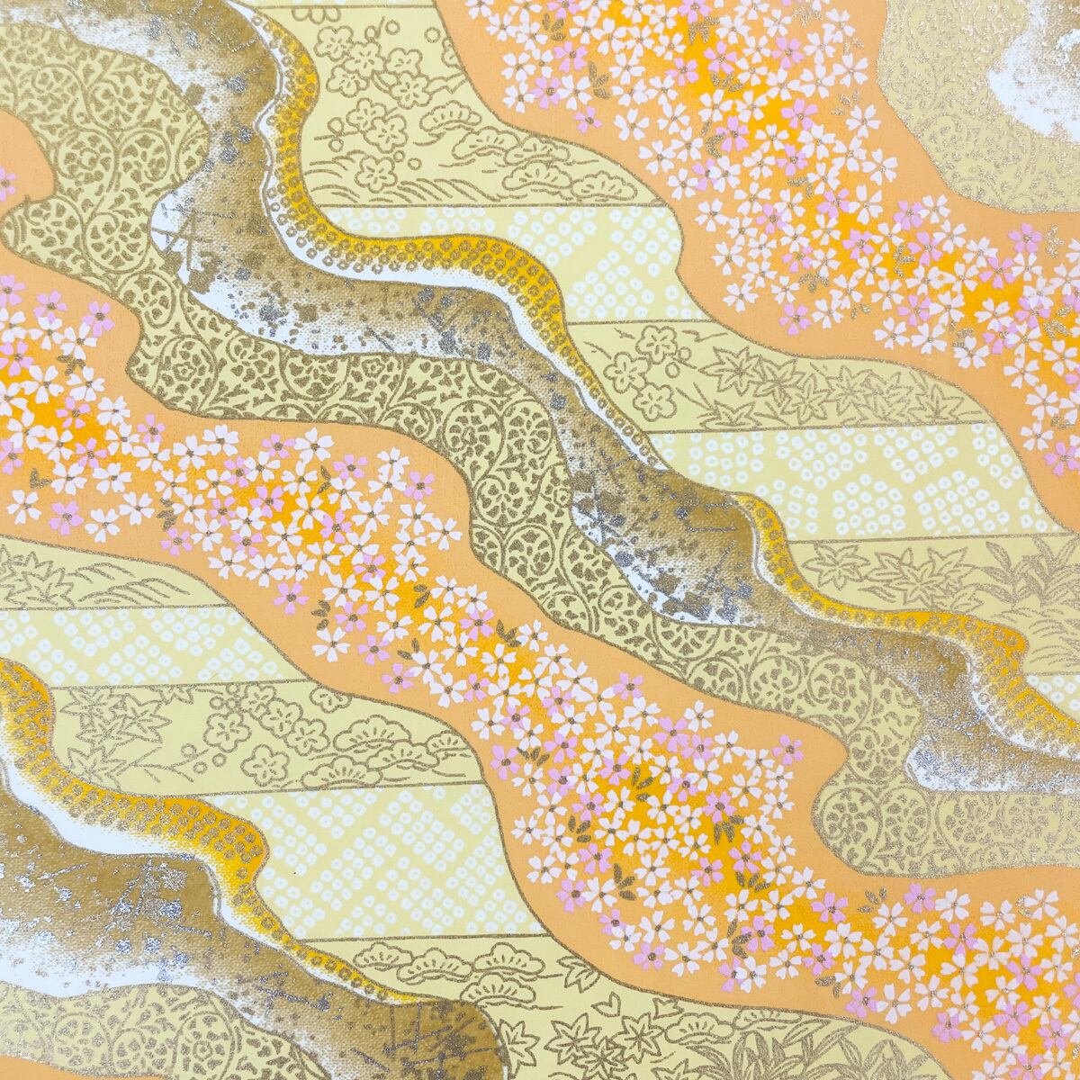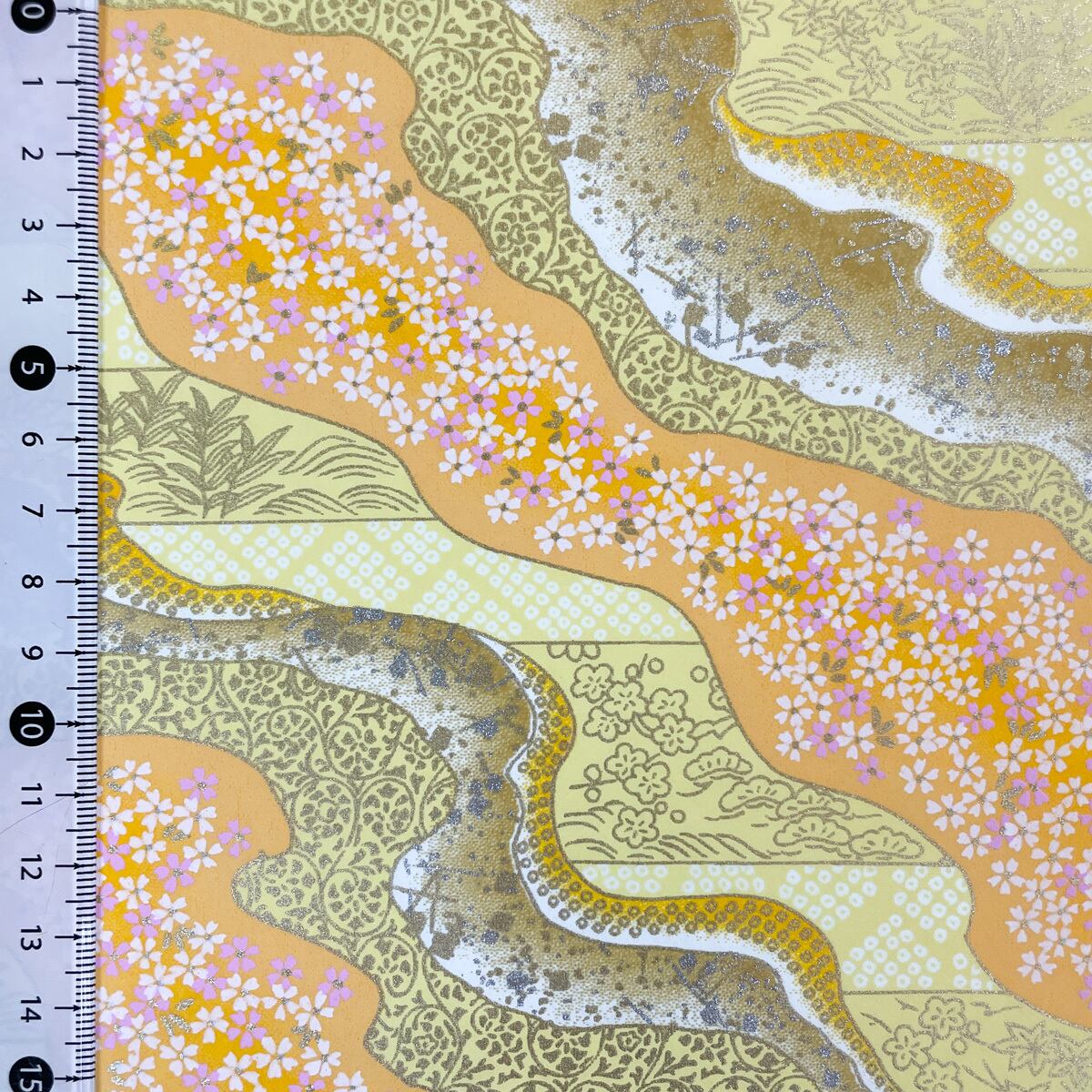 華やかな友禅和紙 切り継ぎ風に 桜ちらし 鹿の子 紅葉 黄色 クリーム色 大判 約63x93cm YUZEN dyeing
