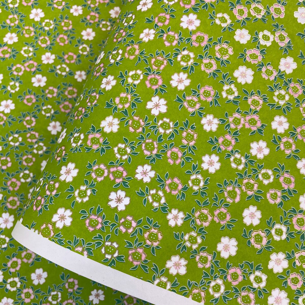 友禅和紙 黄緑に桜 小花 可愛い 大判 約63 x93cm 千代紙 YUZEN dyeing