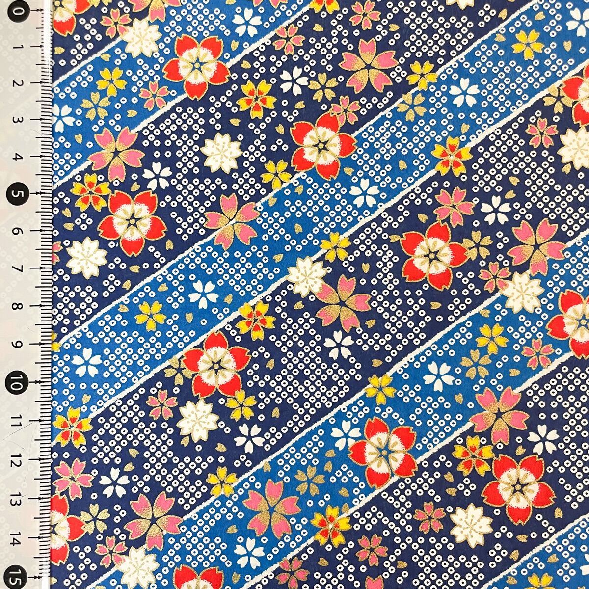 友禅和紙 紺と青の斜め縞に桜と鹿の子 可愛い 大判 約63x93cm 千代紙 Yuzen Dyeing