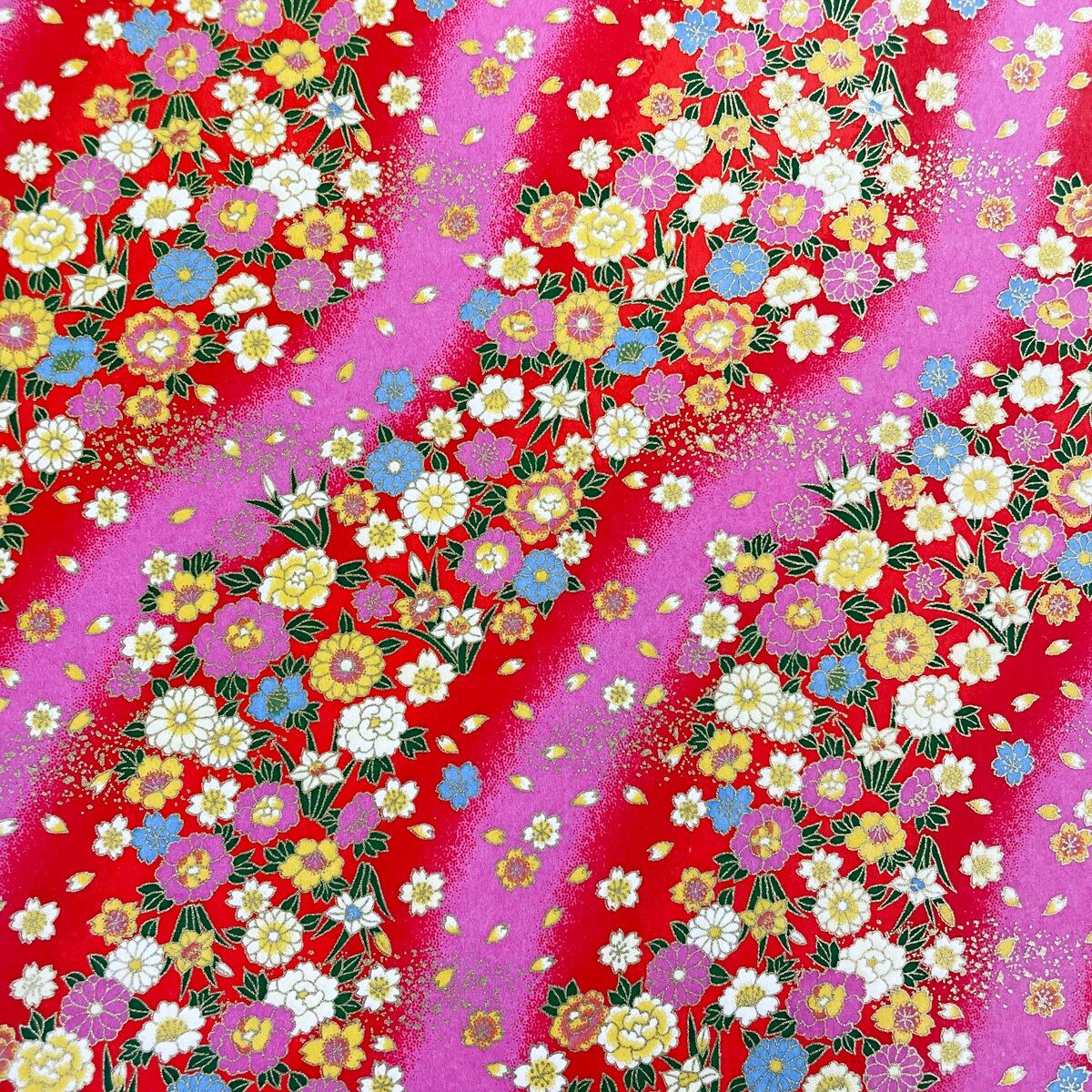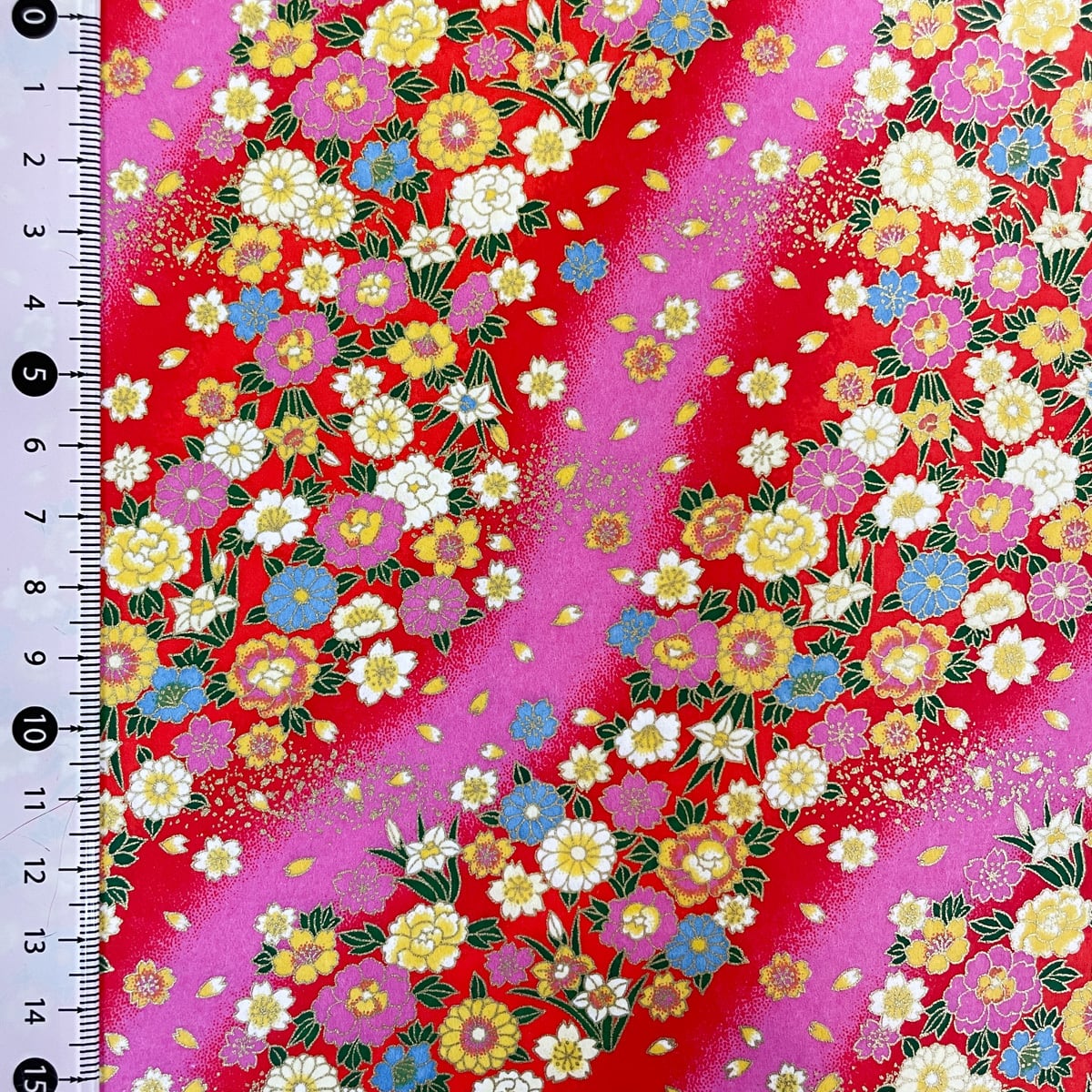 友禅紙 華やか小花 赤とピンクのぼかし 大判 約63x93cm 千代紙 Yuzen Dyeing