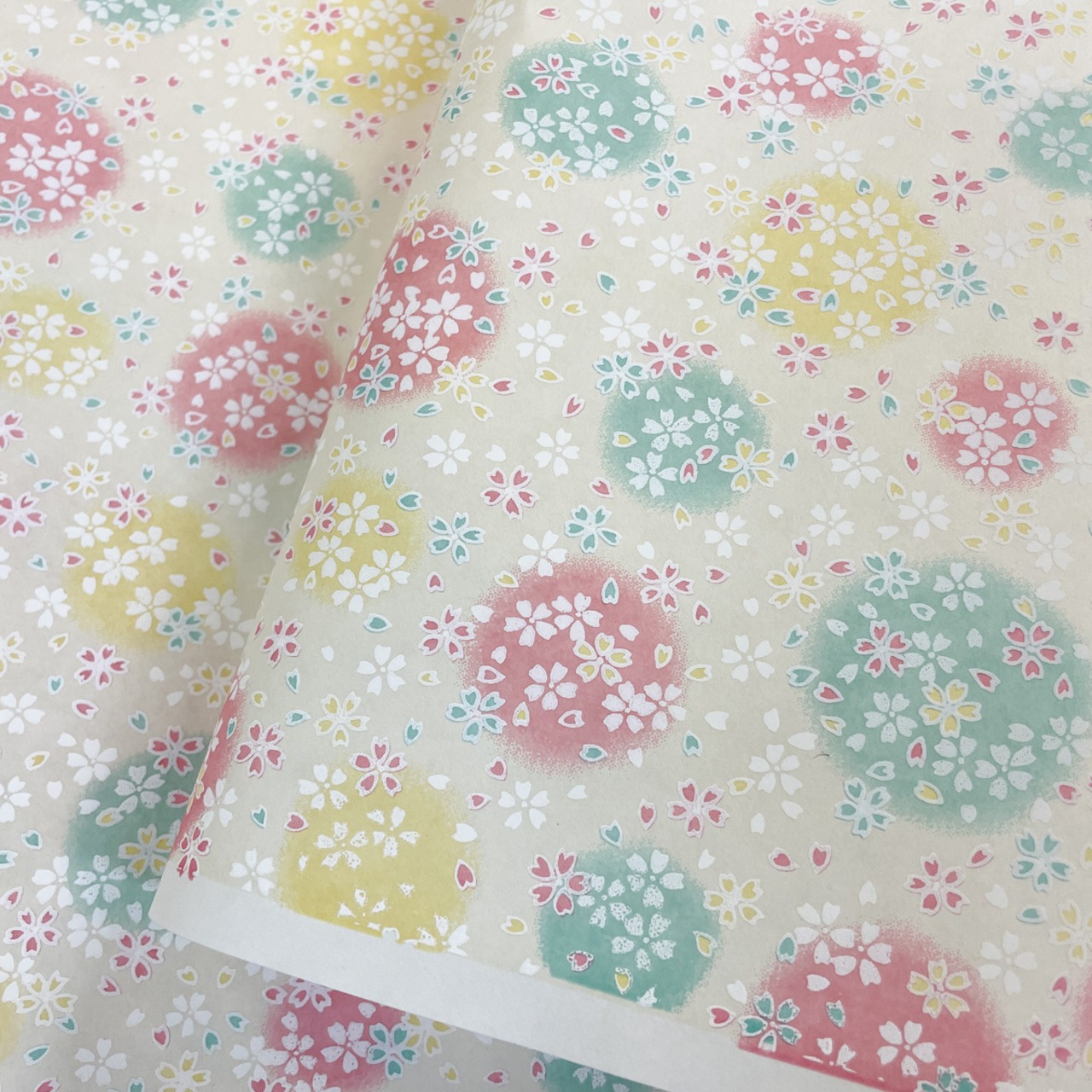 友禅和紙 ふんわり丸模様に桜ちらし 白地 大判 約63x95cm 千代紙 YUZEN dyeing 103359261