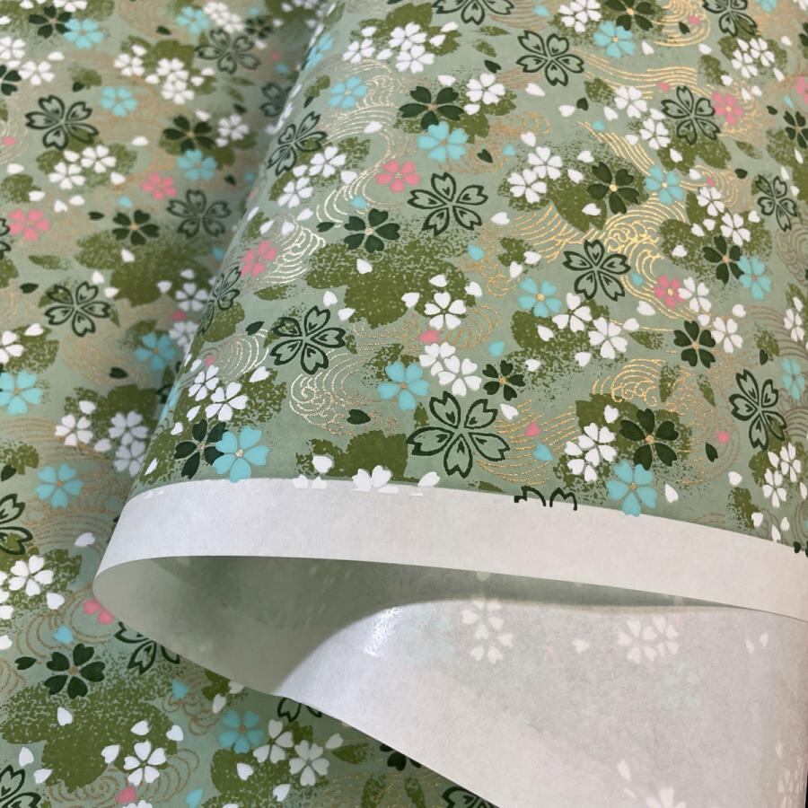 華やかな友禅和紙 風にそよぐ優しい桜 草色 緑 桃色 ピンク 藤色 パープル 青 水色 ブルー 大判 約63x93cm 千代紙 YUZEN dyeing