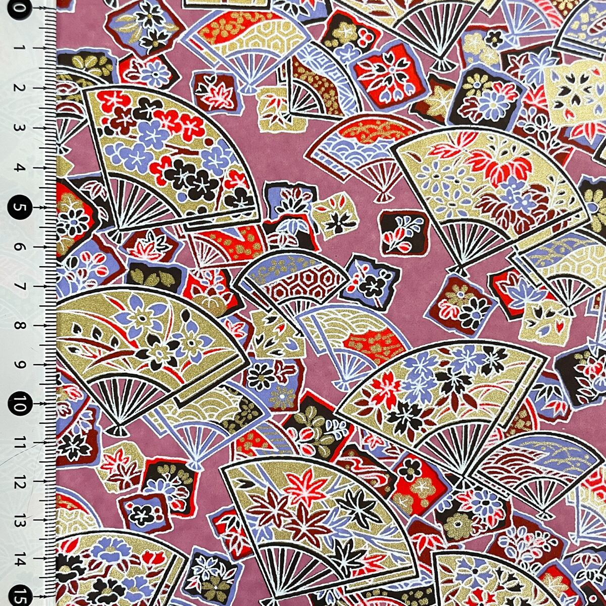 友禅和紙 花模様の扇とカルタ 藤色 桃色 ピンク 大判 約63x93cm 千代紙 Yuzen Dyeing