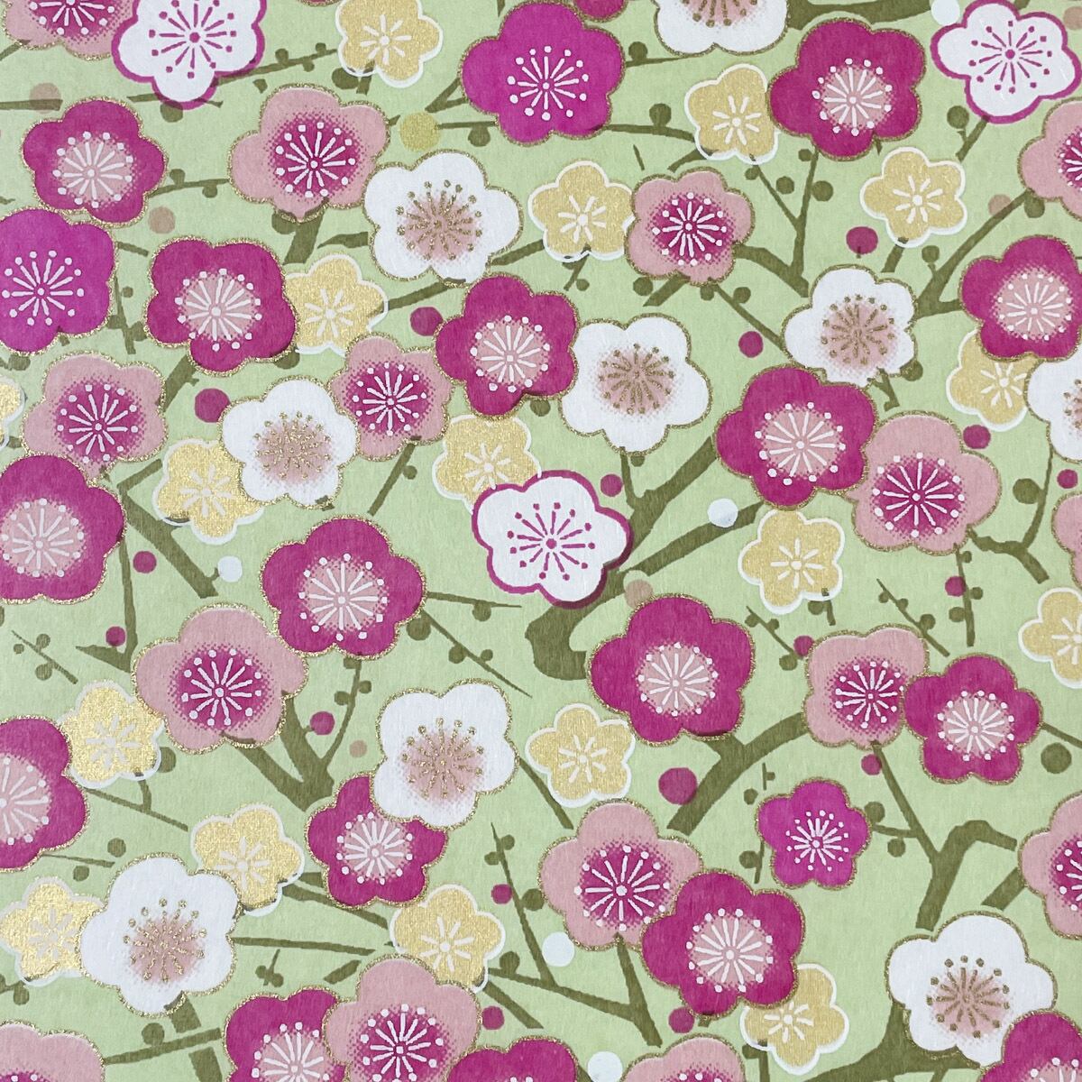 華やかな友禅紙 レトロモダン 紅白梅 淡い緑 可愛い 大判 約63x93cm 千代紙 Yuzen Dyeing 108758390