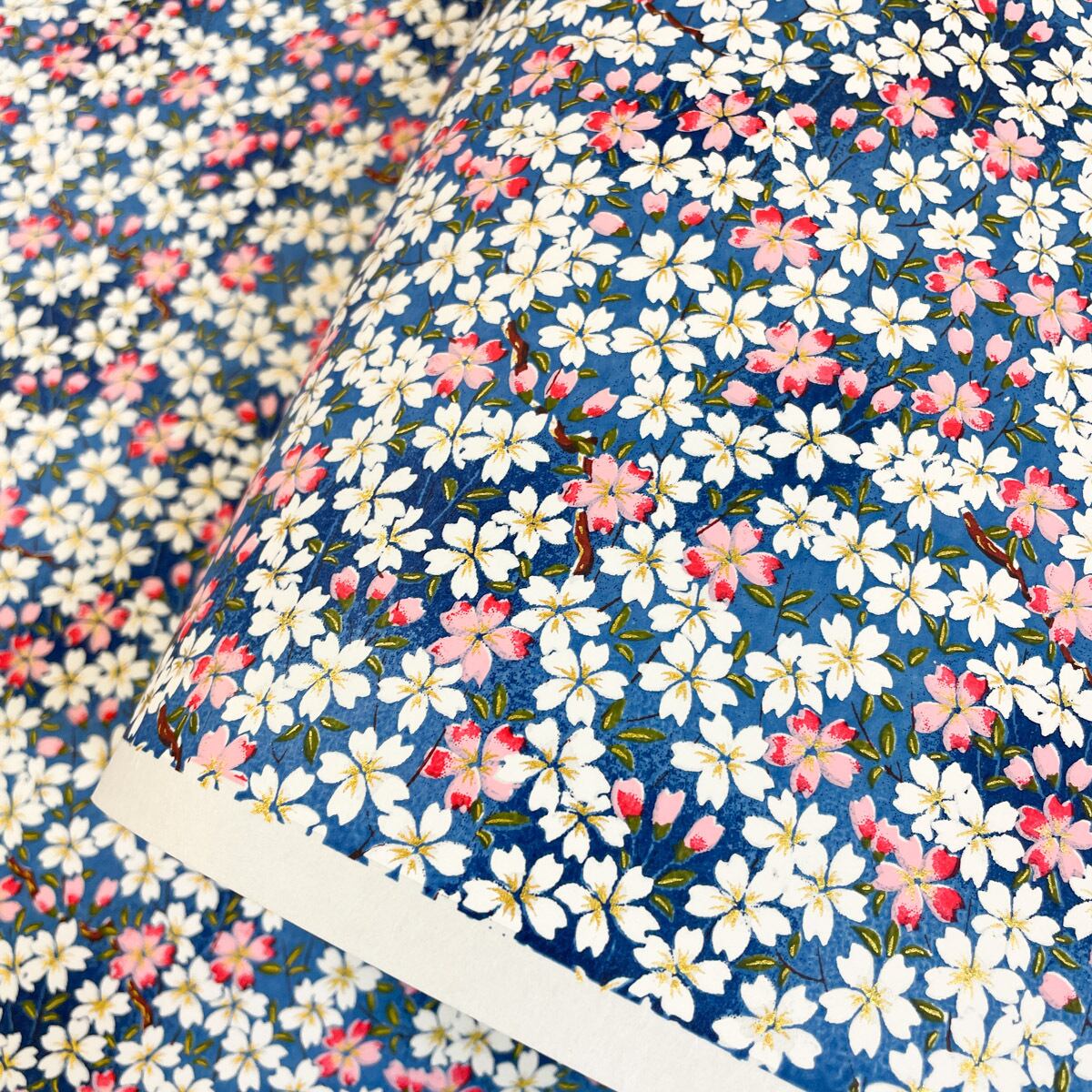 友禅和紙 可愛い桜 満開の桜 青地に金雲 水色 大判 約63x93 cm 千代紙 Yuzen Dyeing 109077341