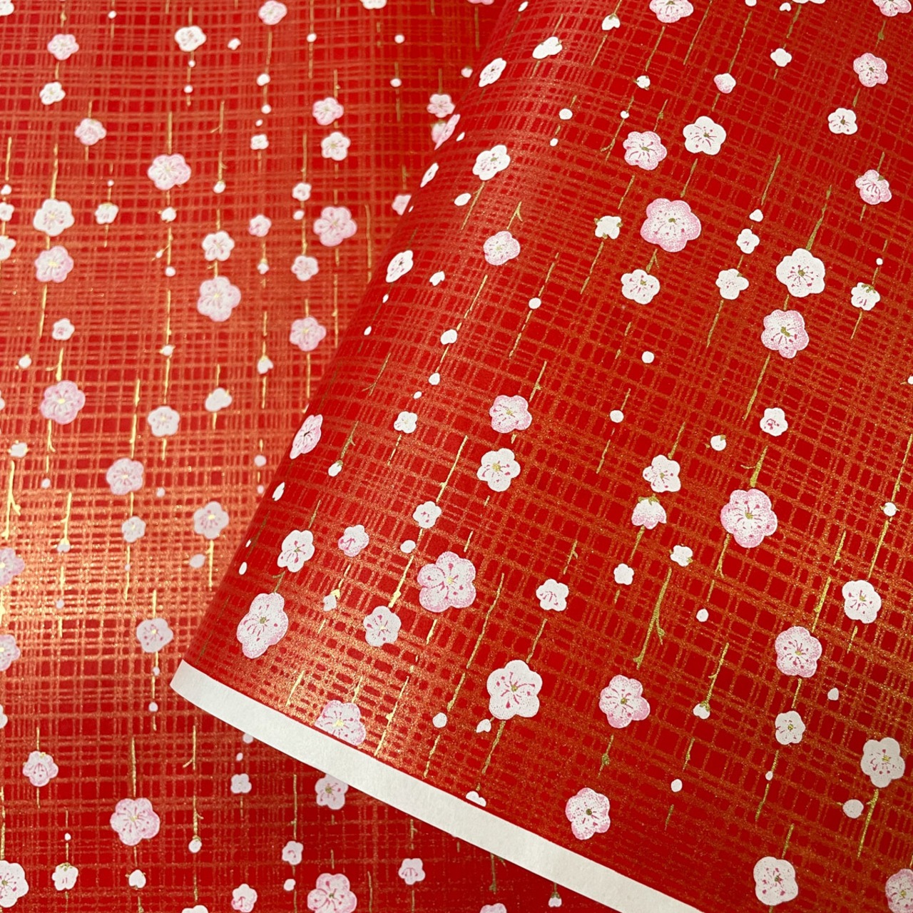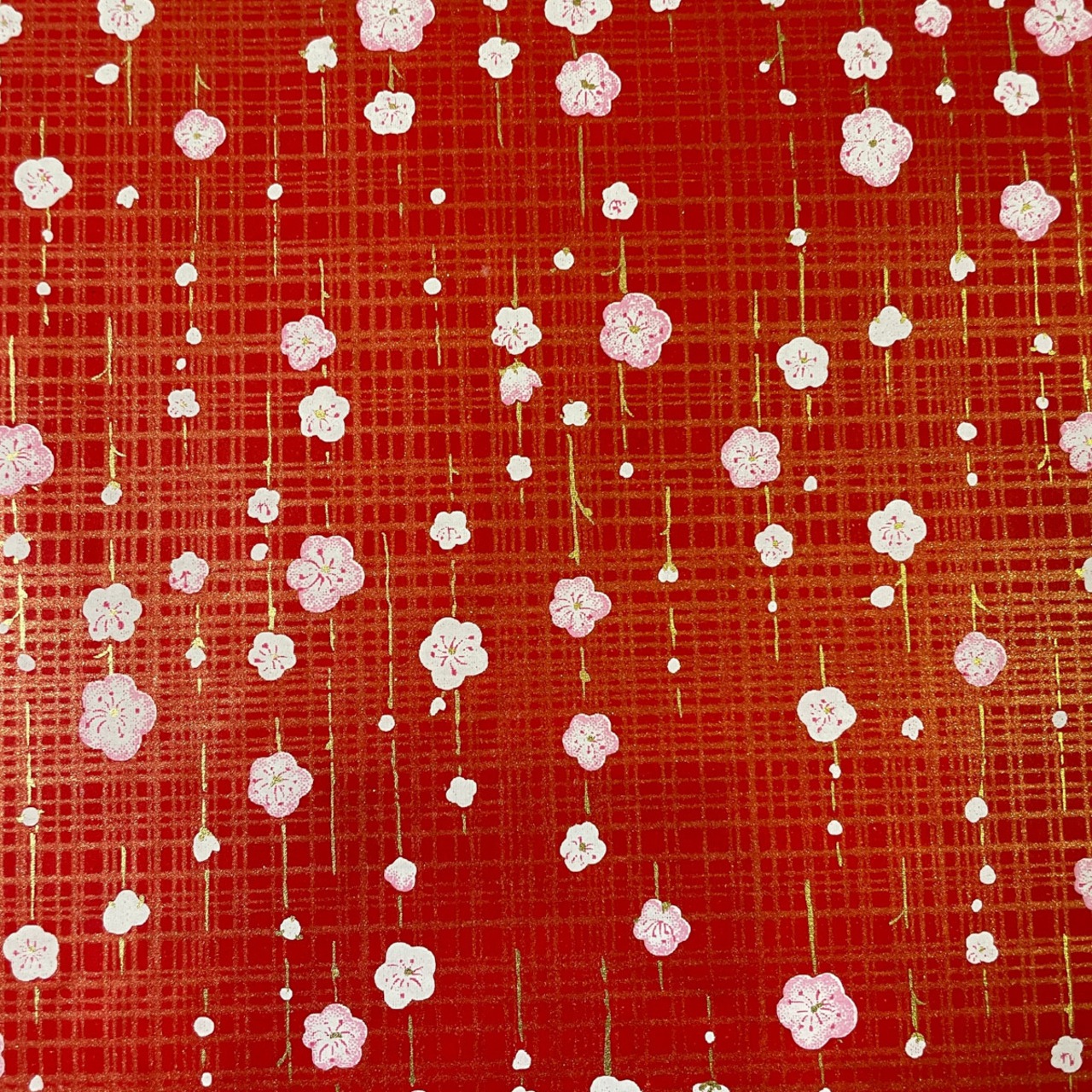華やかな友禅和紙 やさしい色のしだれ梅 赤 大判 約63x93cm 千代紙 Yuzen Dyeing 109228822