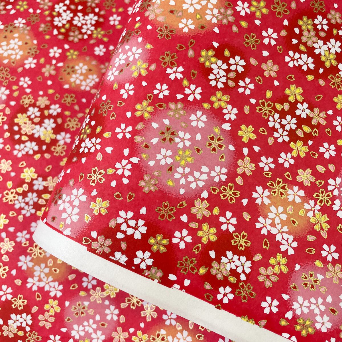 友禅和紙 ふんわり丸模様に桜ちらし 鮮やかな赤 大判 約63x95cm 千代紙 Yuzen Dyeing 109228839