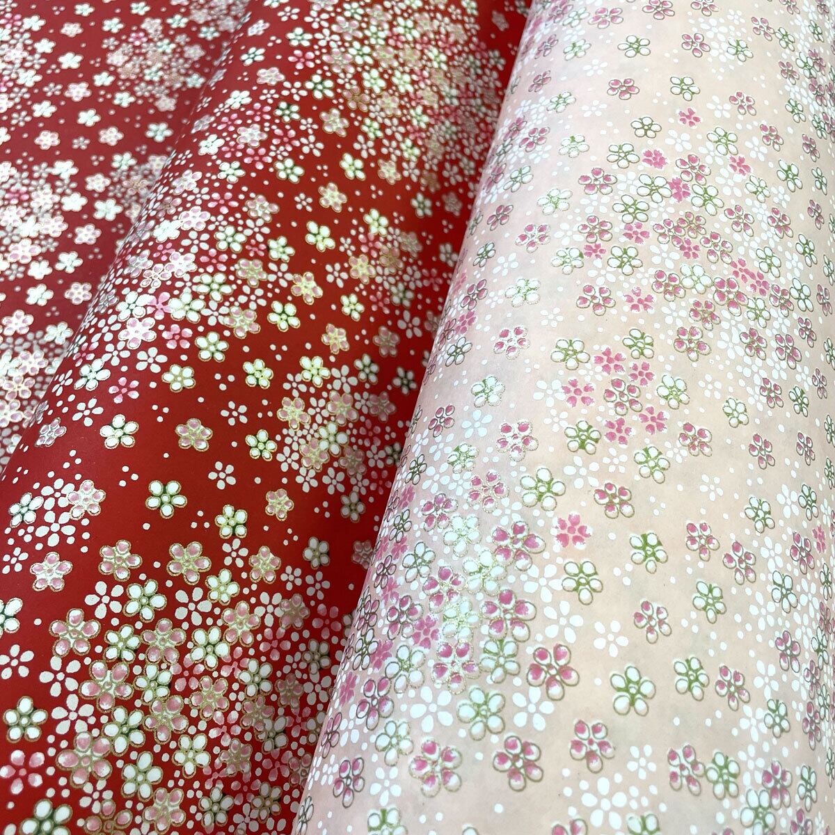 友禅和紙 可愛い小花ちらし 赤 桃色 ピンク 大判 菊判 約63x93 cm 千代紙 Yuzen Dyeing 113332128