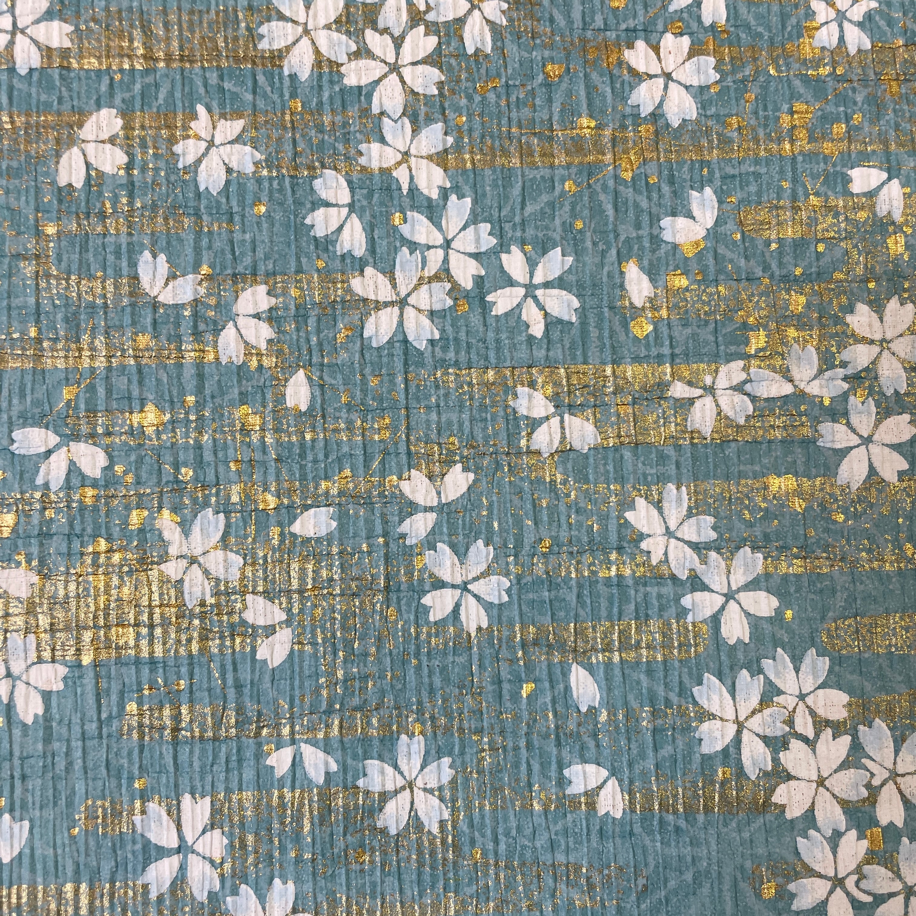 友禅ちりめん 麻の葉の地模様に桜 青緑 YUZEN crape paper 113425366