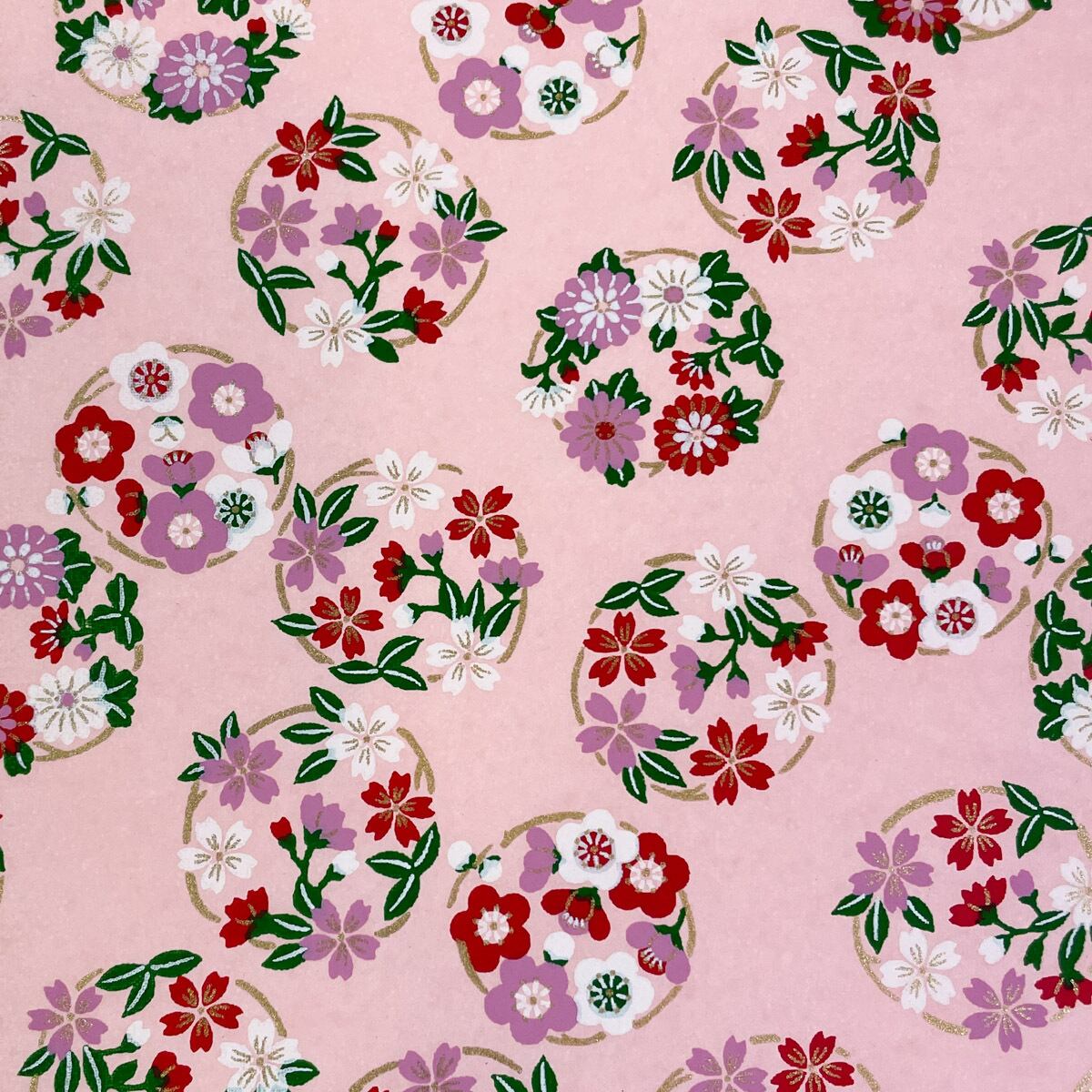 華やかな友禅紙 ピンクに花輪 可愛い 小花 桜 梅 大判 約63x93cm 千代紙 Yuzen Dyeing 113615895