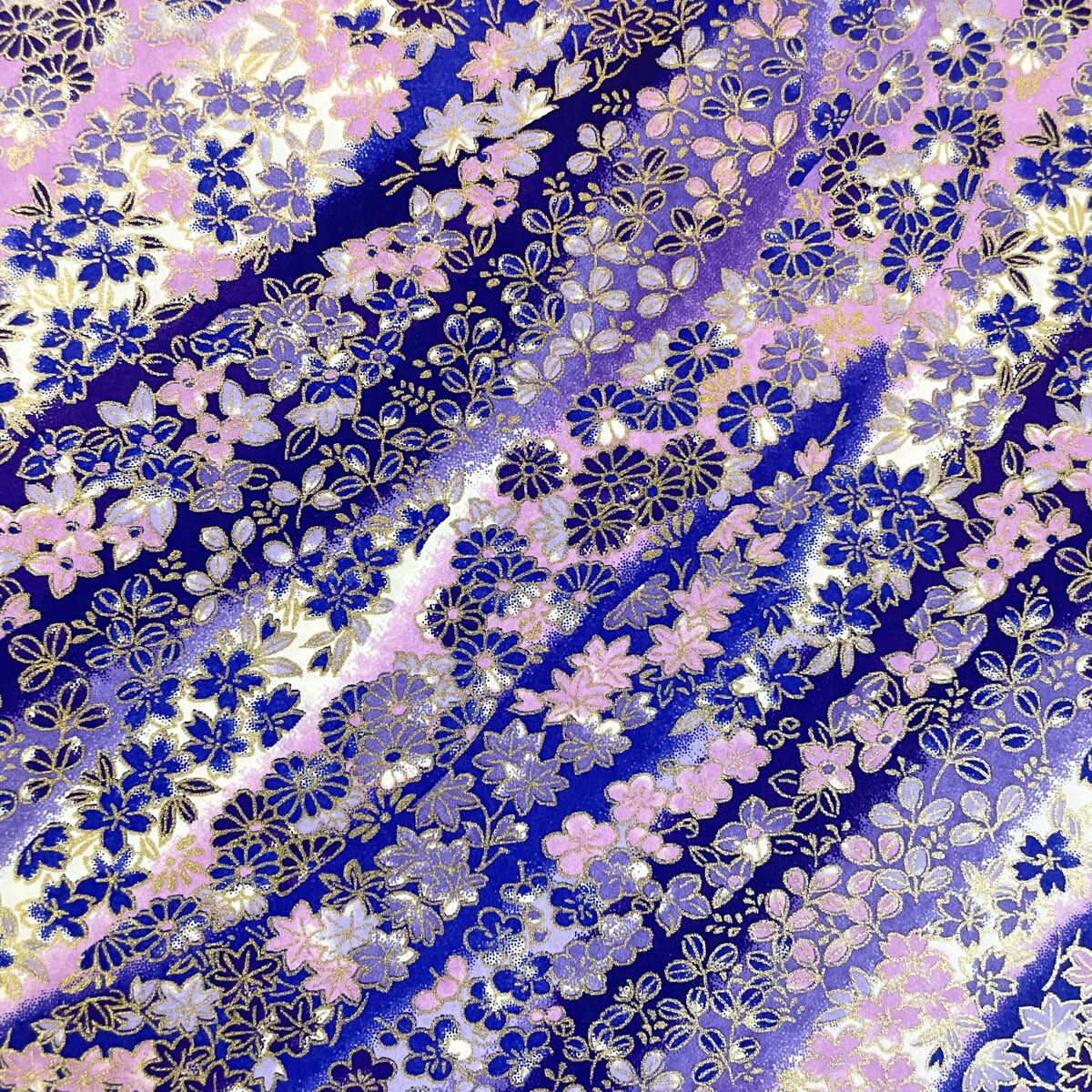 友禅和紙 切り継ぎ風に並べた小花 紅葉 梅 菊 桜 紫色 藤色 大判 約63x93cm 千代紙 Yuzen Dyeing 113616063