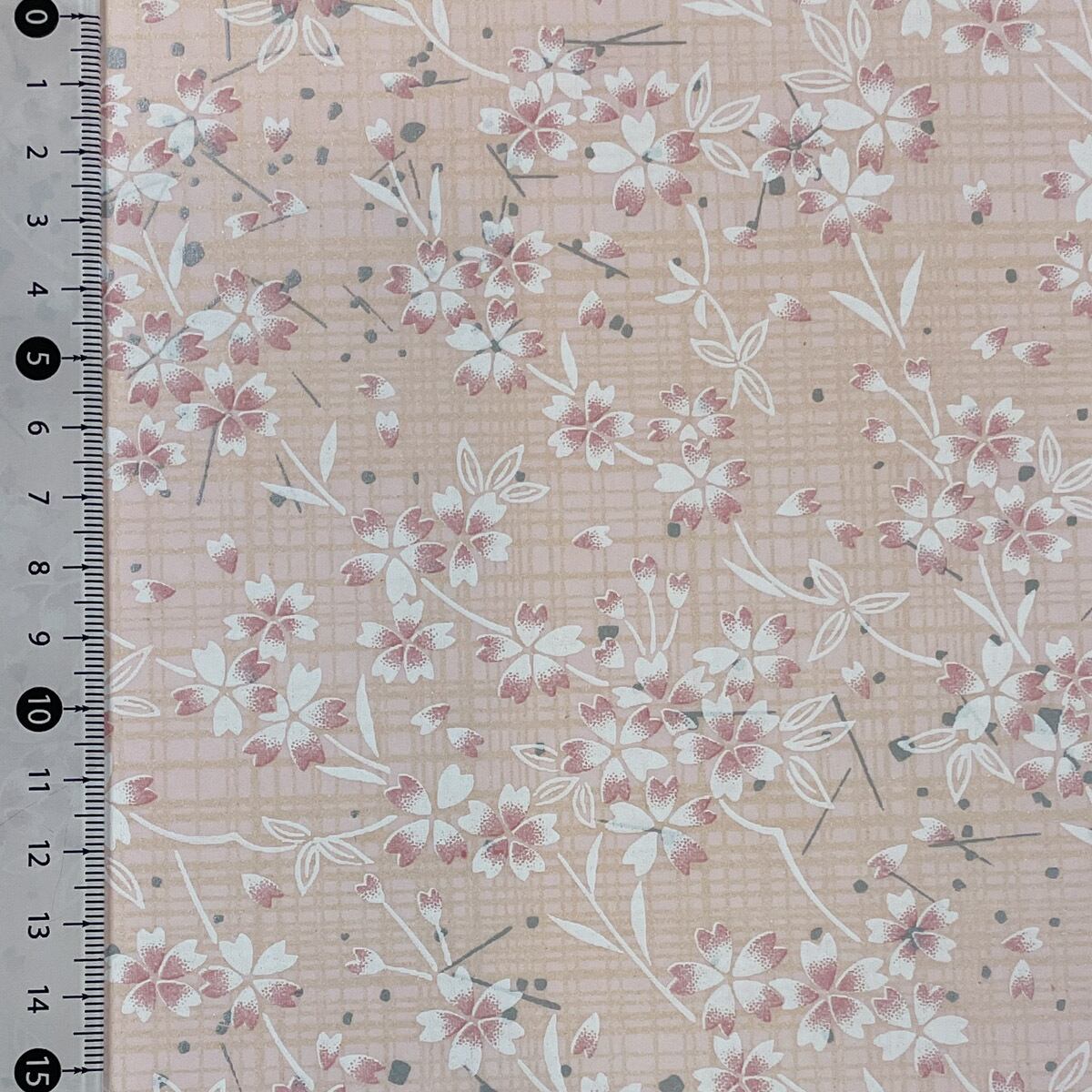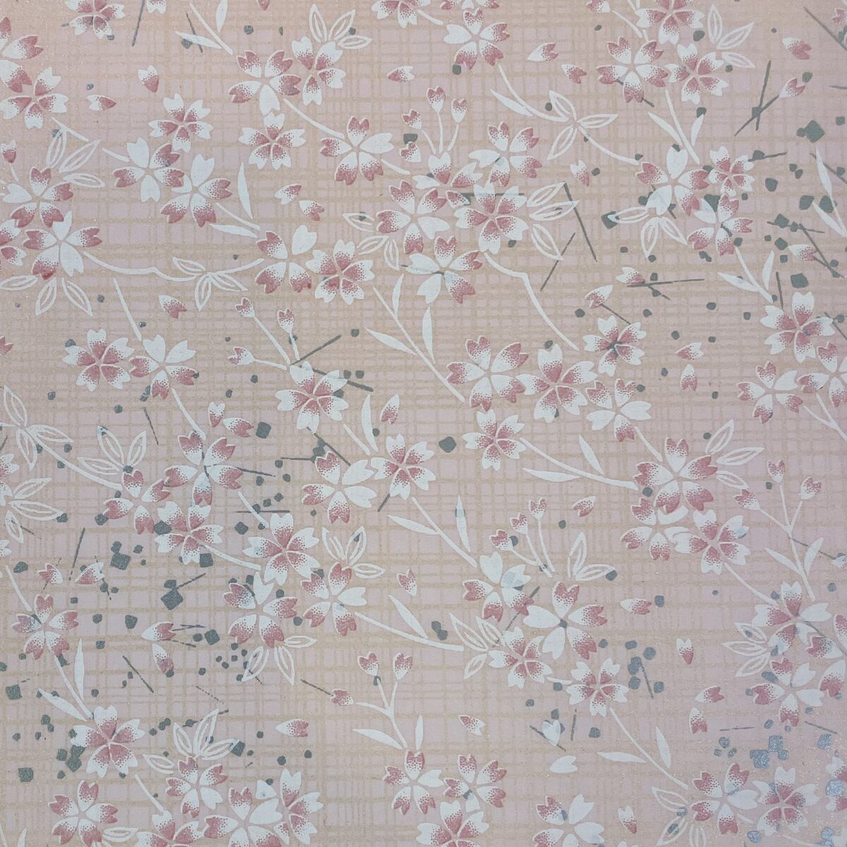 友禅和紙 優しいピンクに枝垂れ桜 チェックの背景に銀砂子 大判 約63x93cm 千代紙 Yuzen Dyeing 113616107