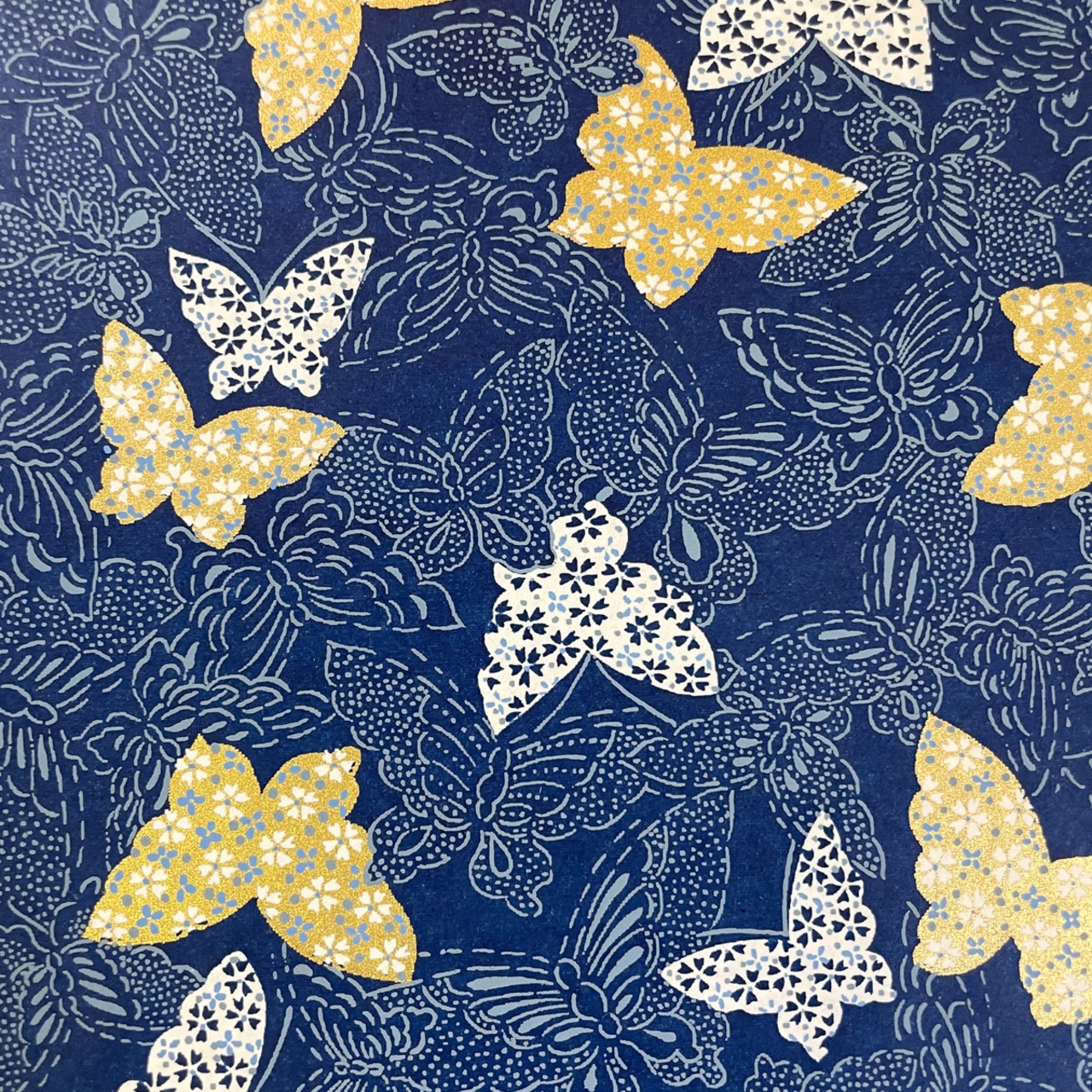 友禅和紙 藍色に黄色と白の蝶々 上品 おしゃれ 大判 約63x93cm 千代紙 Yuzen Dyeing 113616201