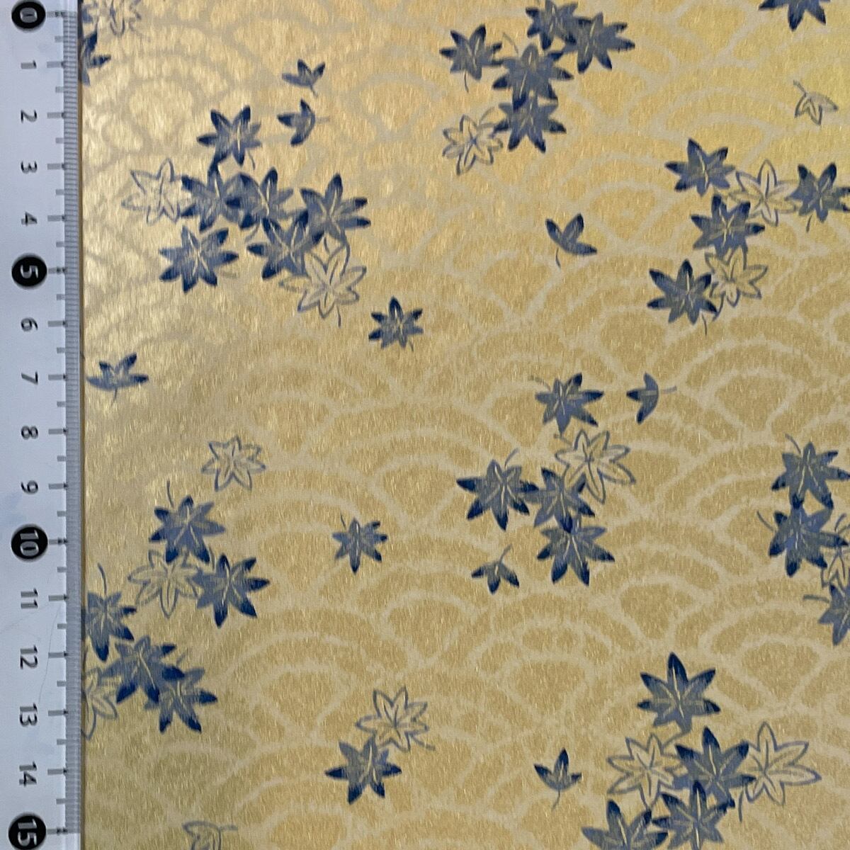 友禅和紙 青海波に藍色の紅葉 金地 大判 約63x93cm 千代紙 Yuzen Dyeing 113616300