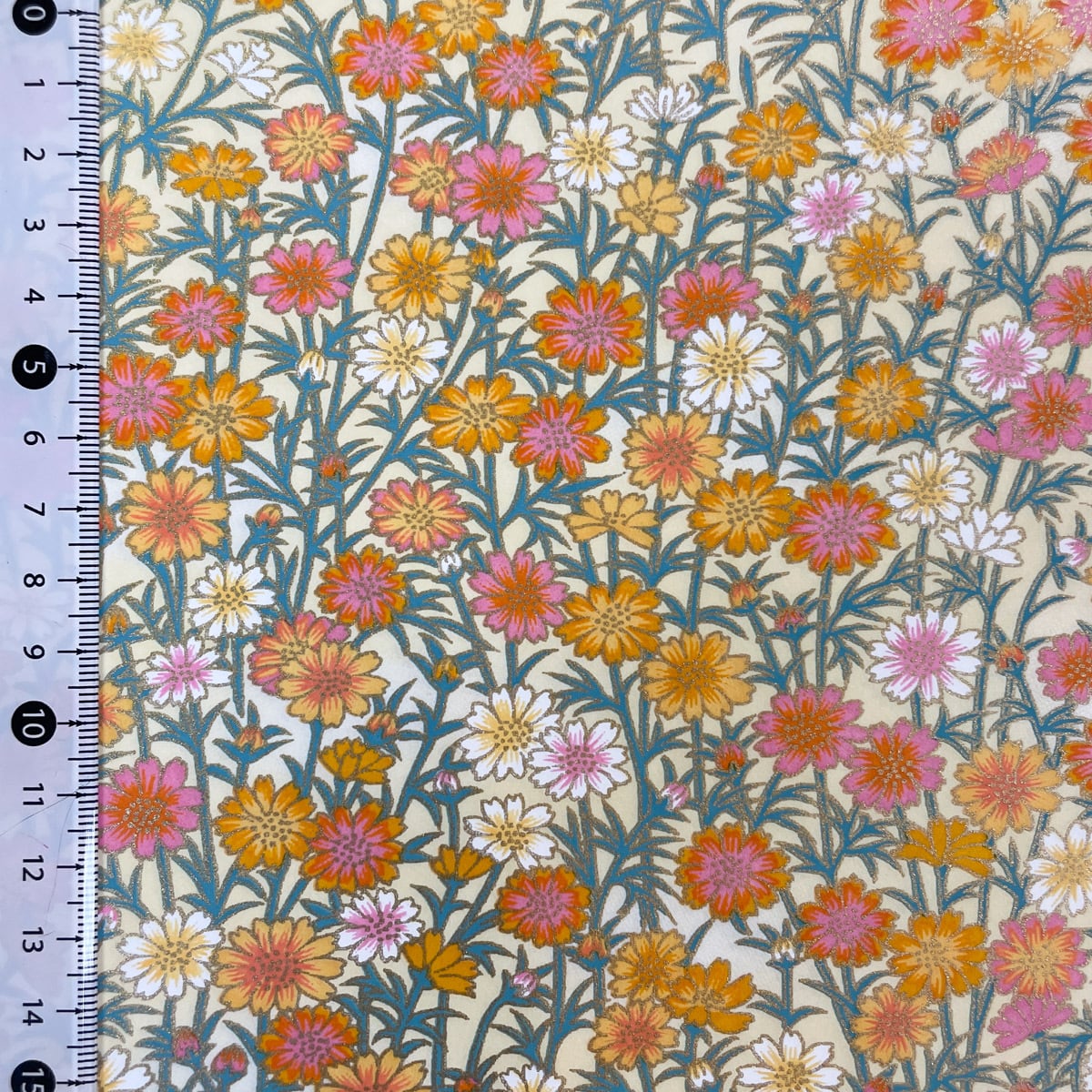 友禅紙 春のマーガレット 可愛い 黄色 橙色 オレンジ 大判 約63x93cm 千代紙 YUZEN dyeing 114337124