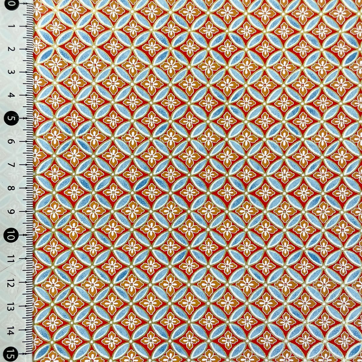 友禅和紙 小さい七宝に小花柄 赤系 民芸調 大判 約63x93cm YUZEN dyeing 114337772
