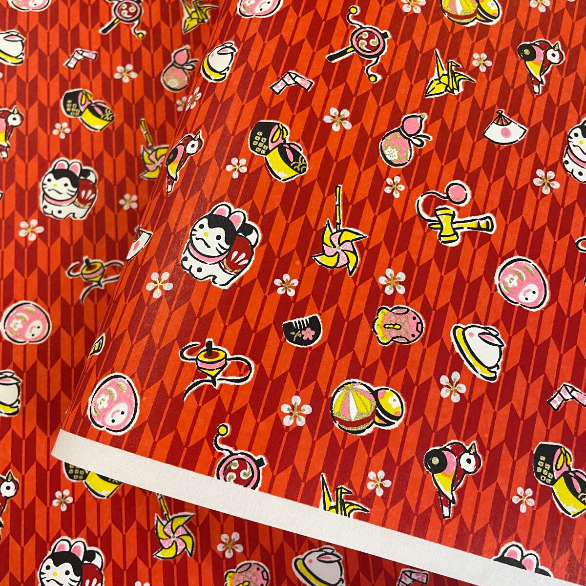 友禅和紙 可愛いおもちゃ 玩具 赤の矢絣模様 犬張り子 駒 毬 こっぽり 大判 約63x93cm YUZEN dyeing 114337885