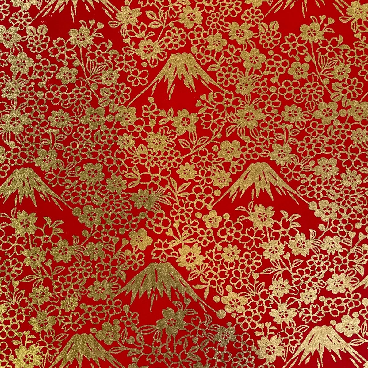 友禅和紙 豪華 富士山と桜 赤+金 黒+銀 青メタリック 大判 約63x93cm 千代紙 YUZEN dyeing 114637748