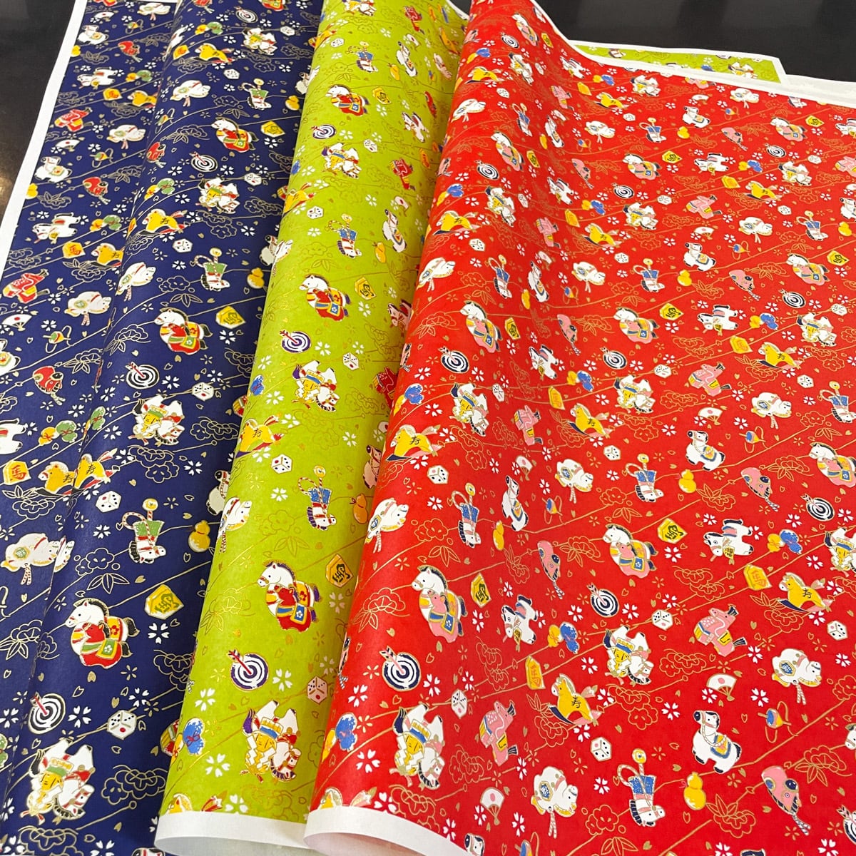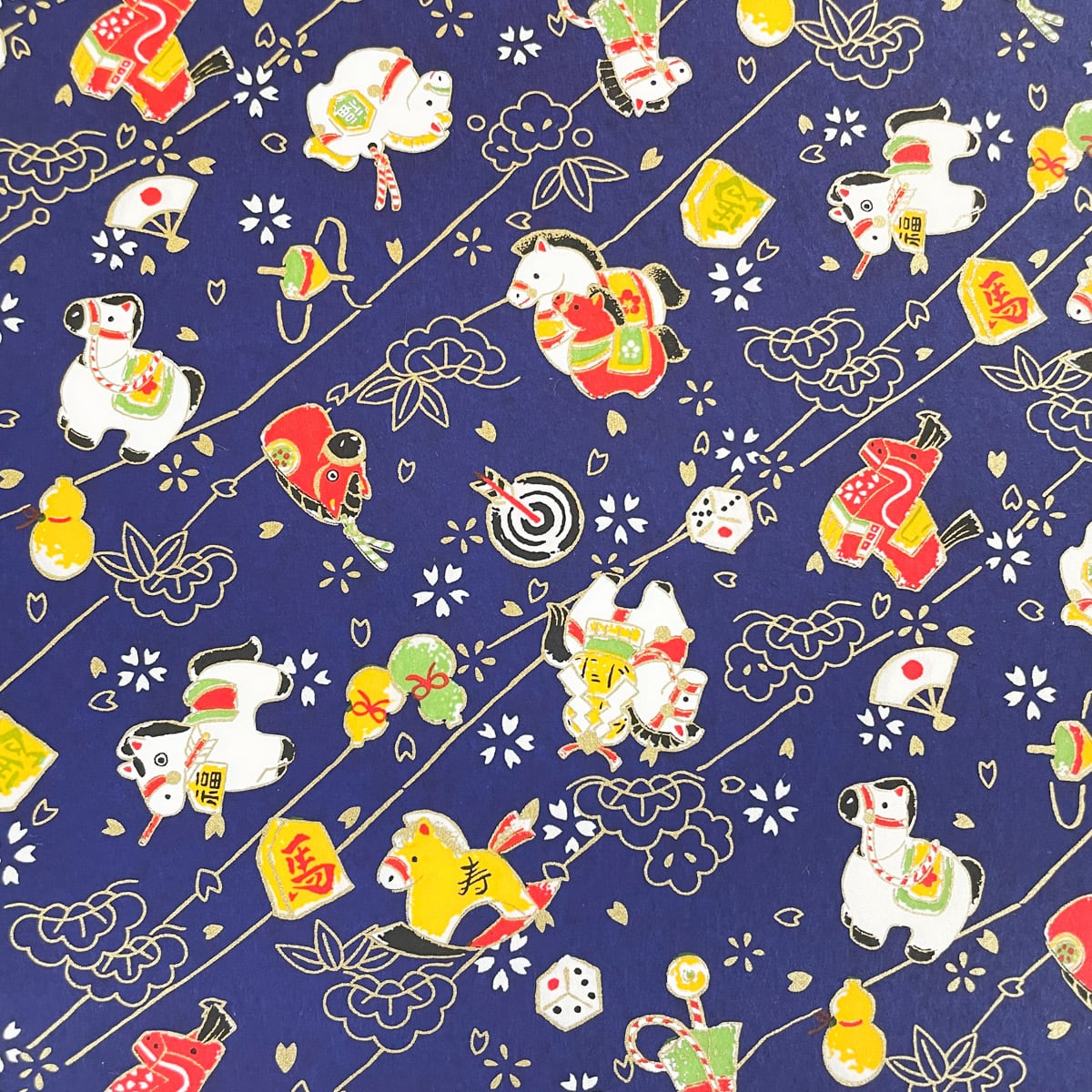 友禅和紙 干支 2026 午 馬 駒 将棋 お正月遊び 大判 約63x93cm 千代紙 YUZEN dyeing 116674698