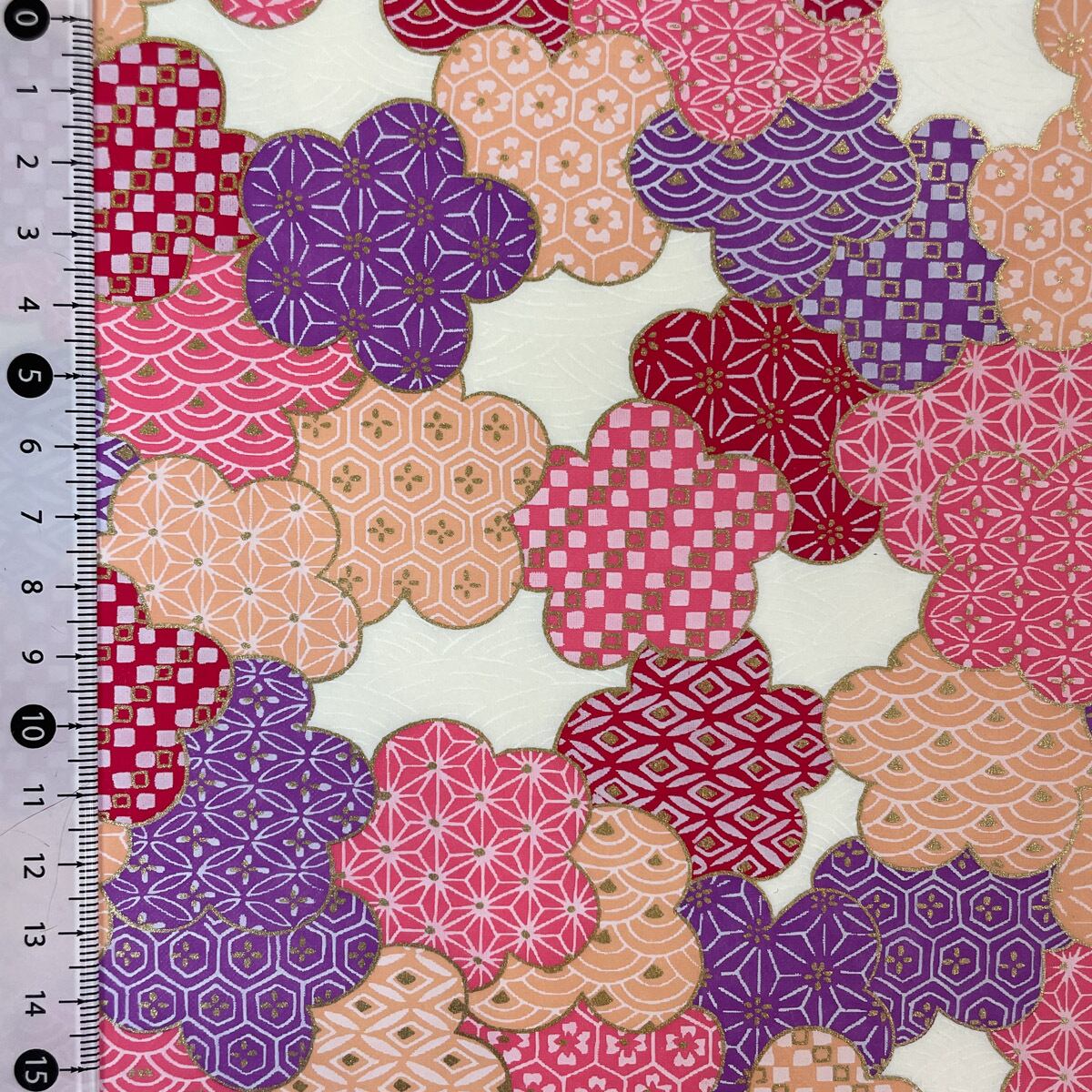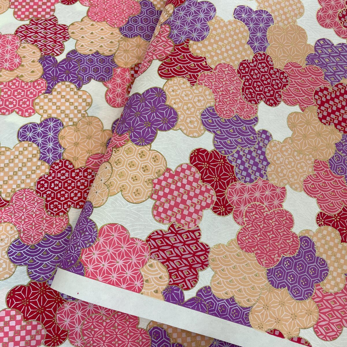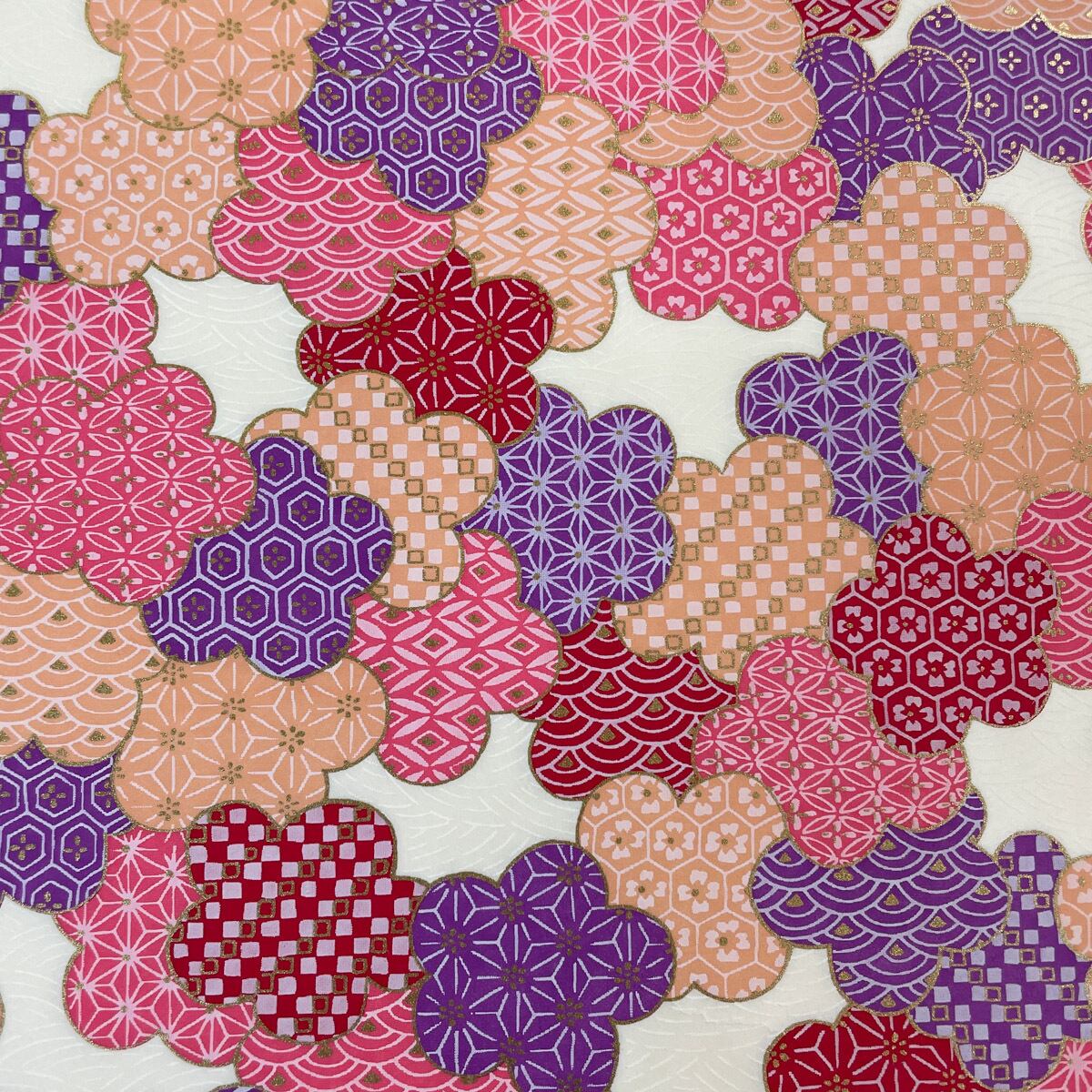 友禅和紙 大きな梅の花 麻の葉 亀甲 青海波紋様 ピンク 藤色 赤 大判 約63x93cm 千代紙 YUZEN dyeing 116880257