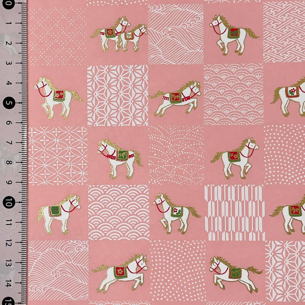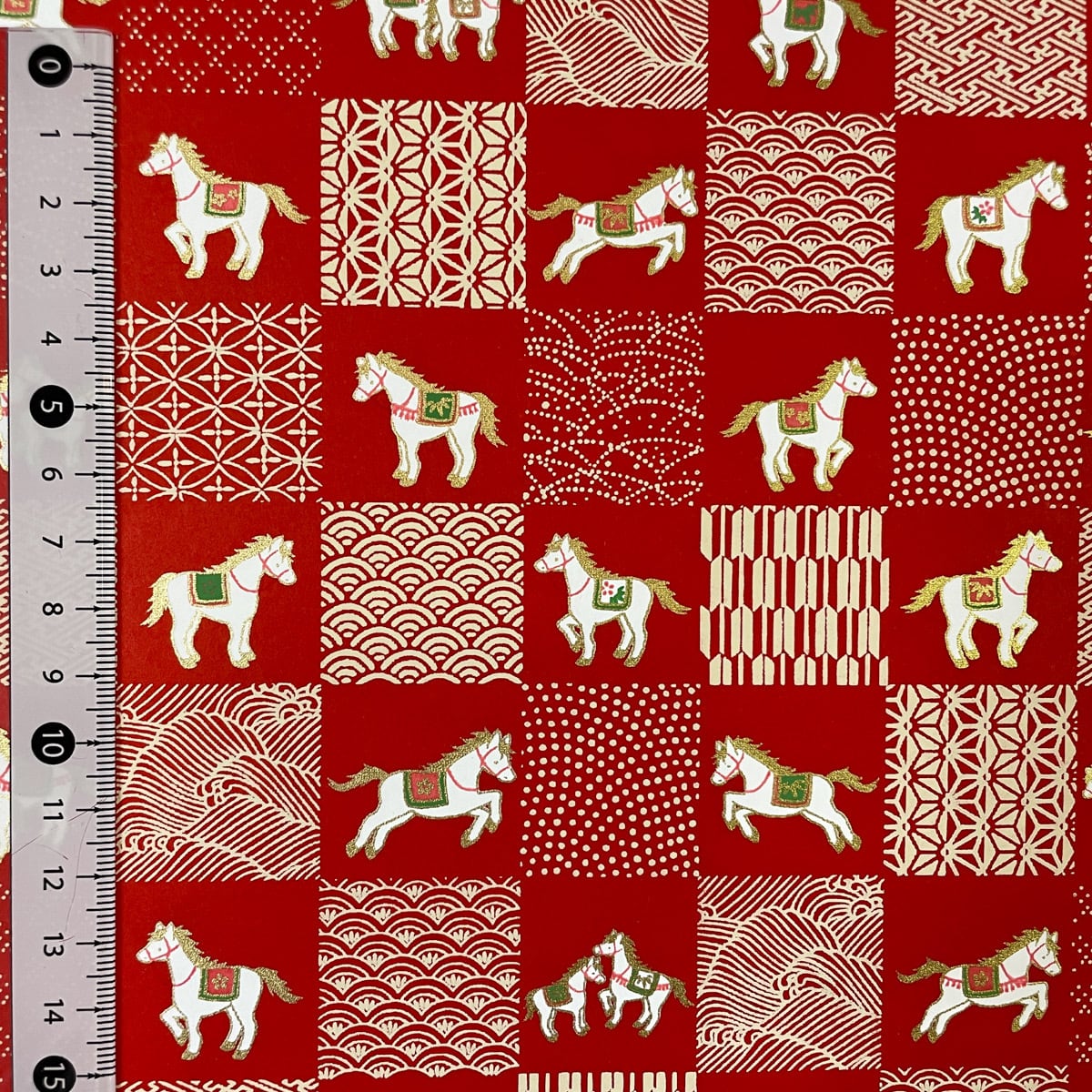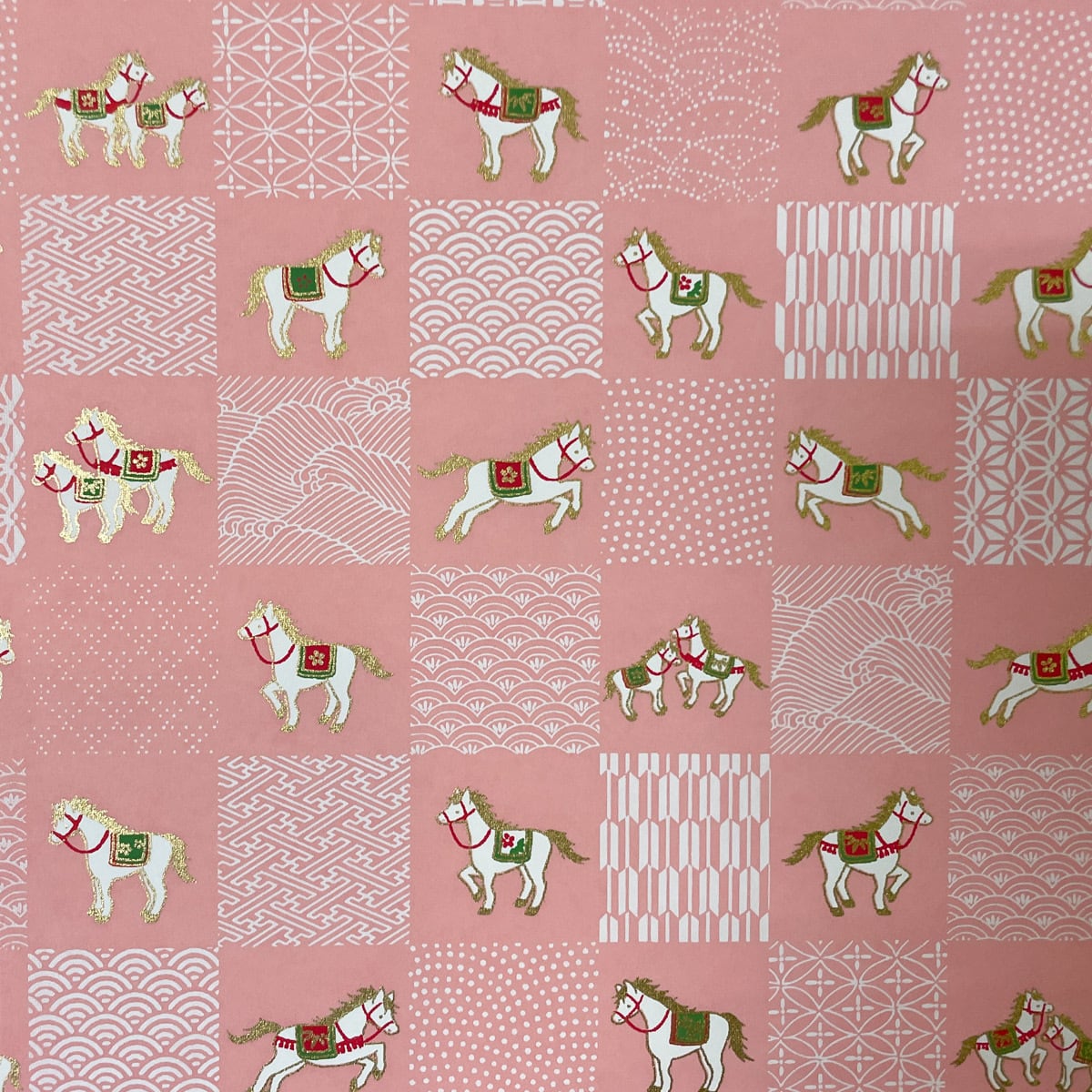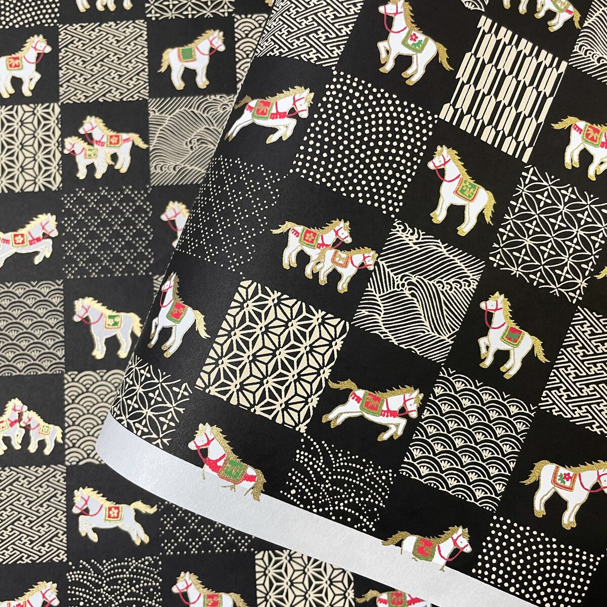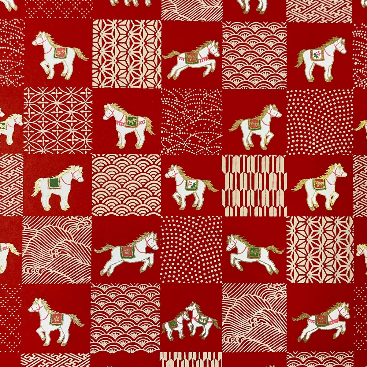 友禅和紙 干支 2026 午 馬 市松模様 大判 約63x93cm 千代紙 YUZEN dyeing 117194529