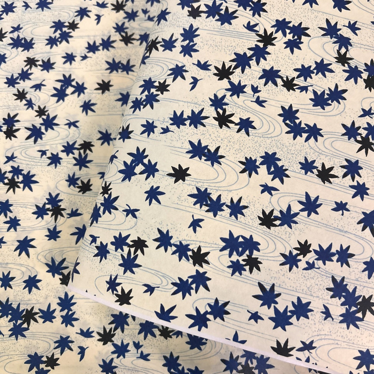 友禅和紙 風情ある紅葉柄 生成色に紺の紅葉 大判 約63x93cm 千代紙 YUZEN dyeing 117803993