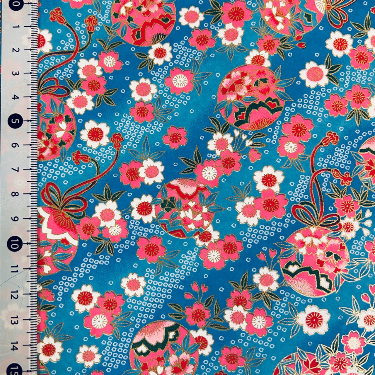 友禅和紙 華やか毬と桜 青のぼかし 可愛い 大判 約63x93cm 千代紙 YUZEN dyeing 117804114