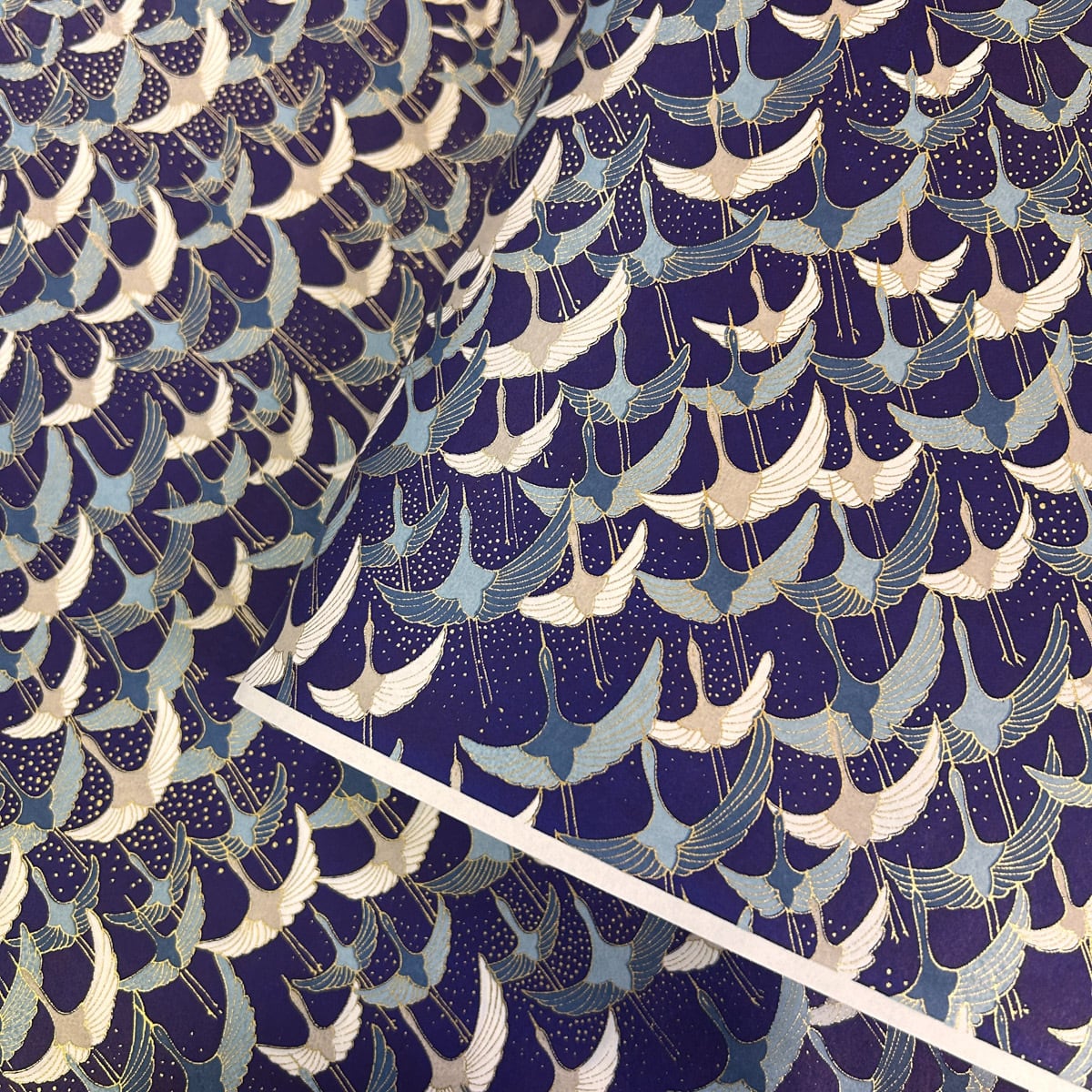 友禅和紙 モダンな鶴のデザイン 飛び立つ鶴 青 紺 大判 約63x93cm 千代紙 YUZEN dyeing 117804207