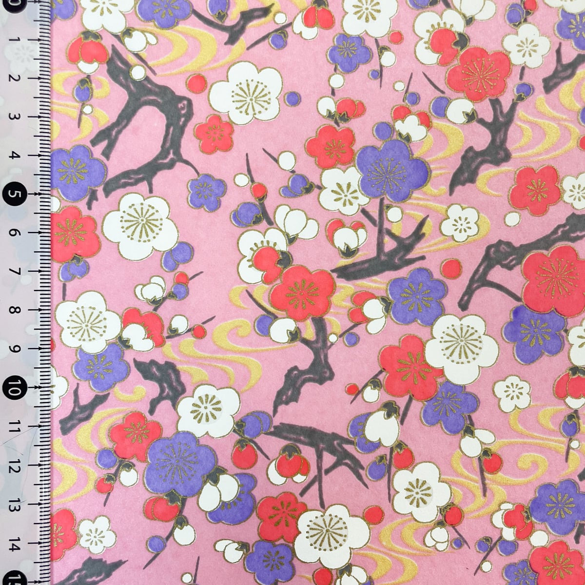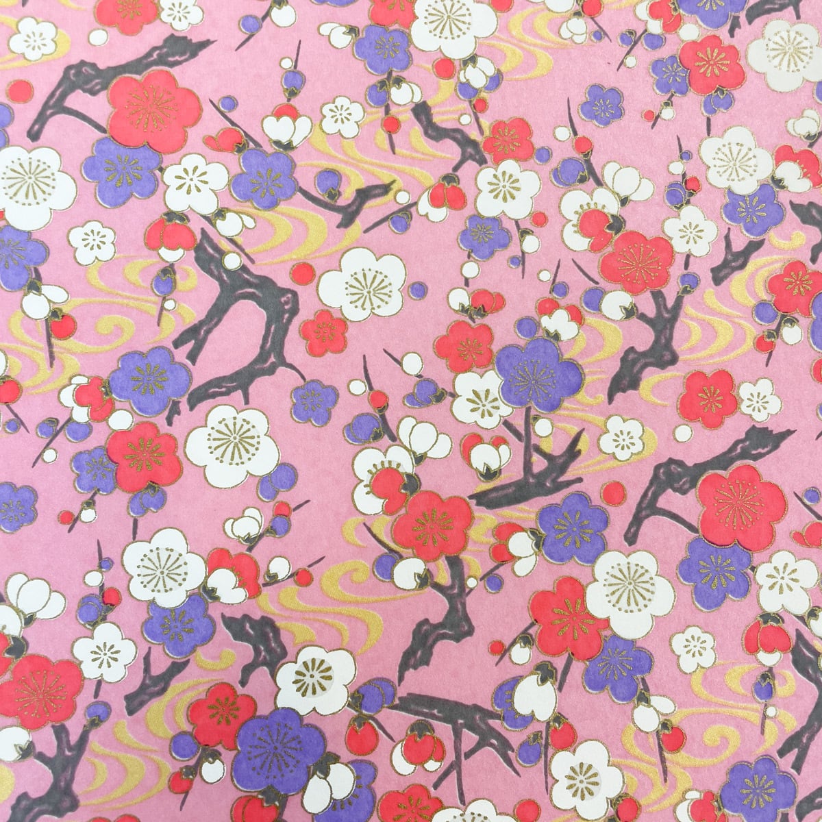 友禅和紙 華やか梅の木 紅白梅 金の流水紋 桃色地 ピンク 大判 約63x93cm YUZEN dyeing 118307102