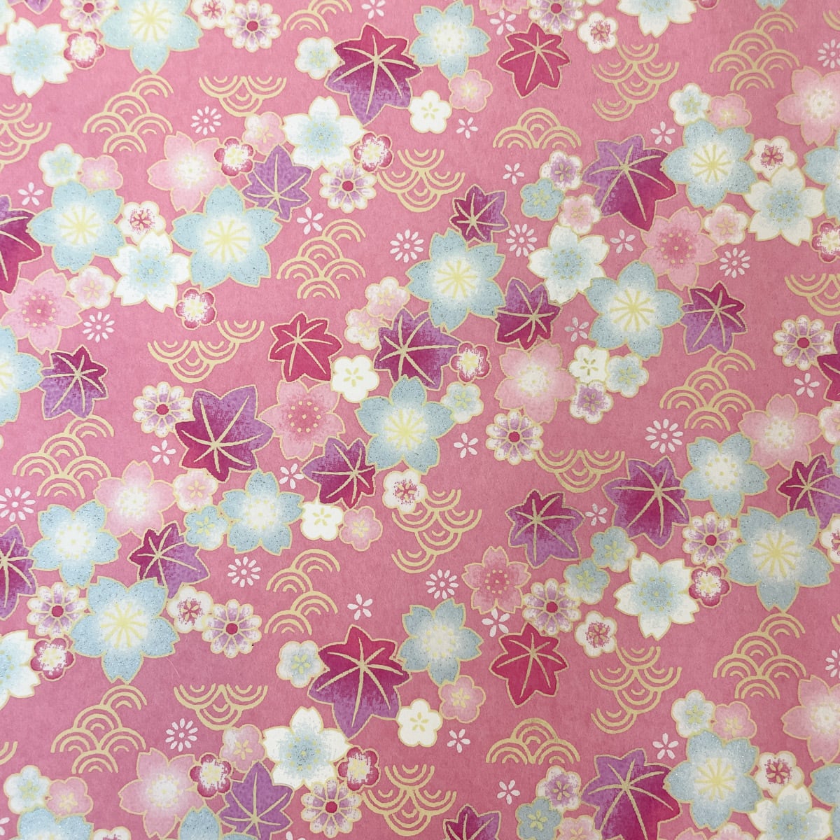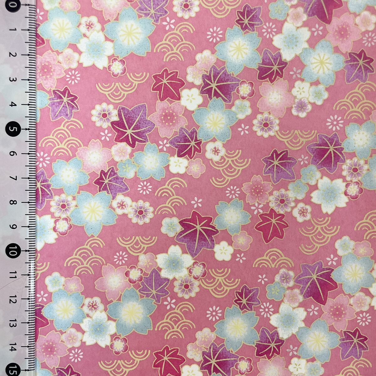 華やかな友禅和紙 紅葉と桜 青海波 優しいピンク 大判 約63x93cm 千代紙 YUZEN dyeing 118307305