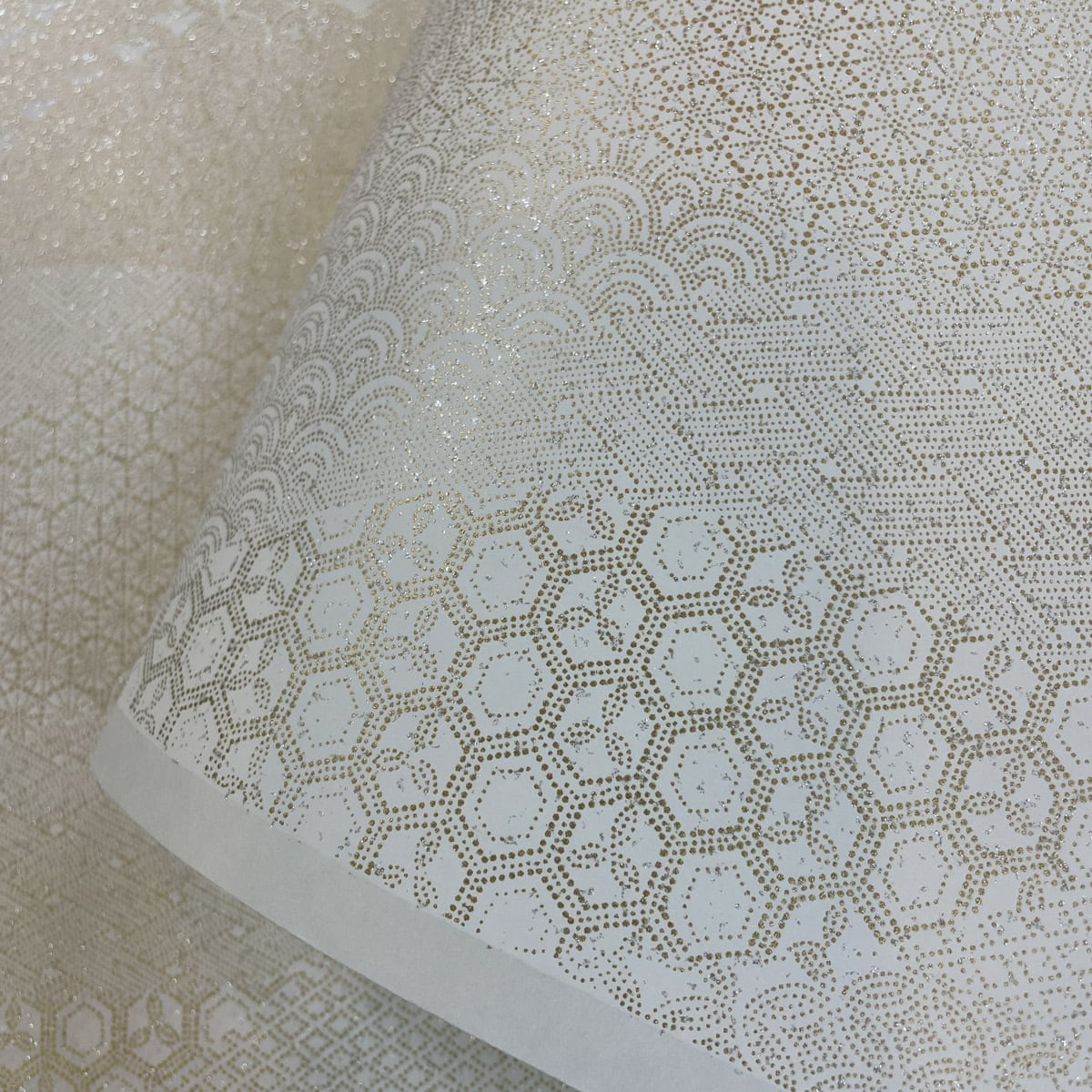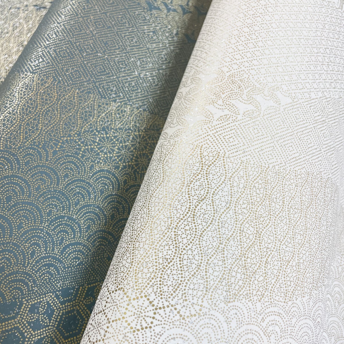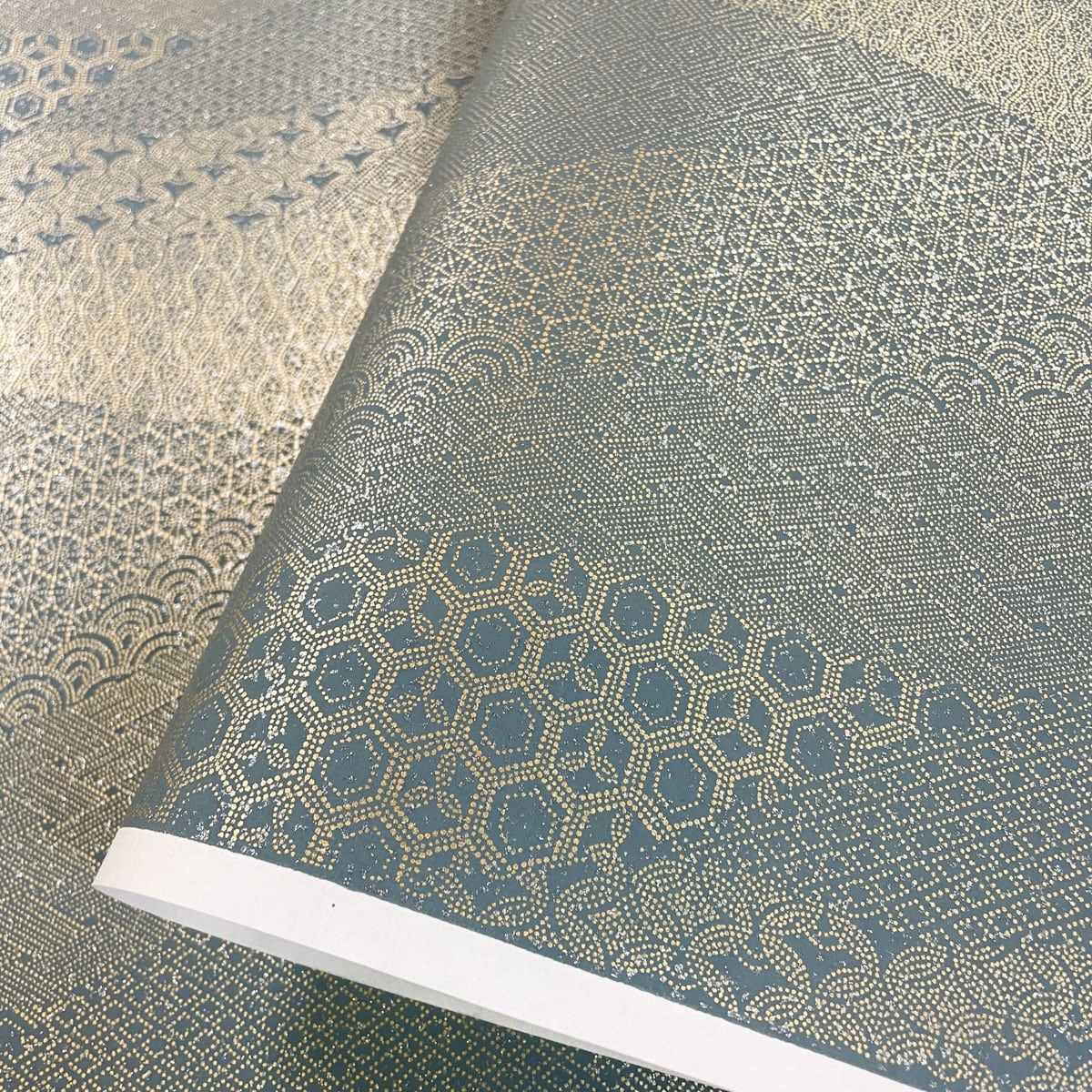 華やかな友禅和紙 パリュール 輝く古典柄 上品なラメ模様 青海波 七宝 立涌 ブルーグレー 白 大判 約63x93cm 千代紙 YUZEN dyeing 119087680