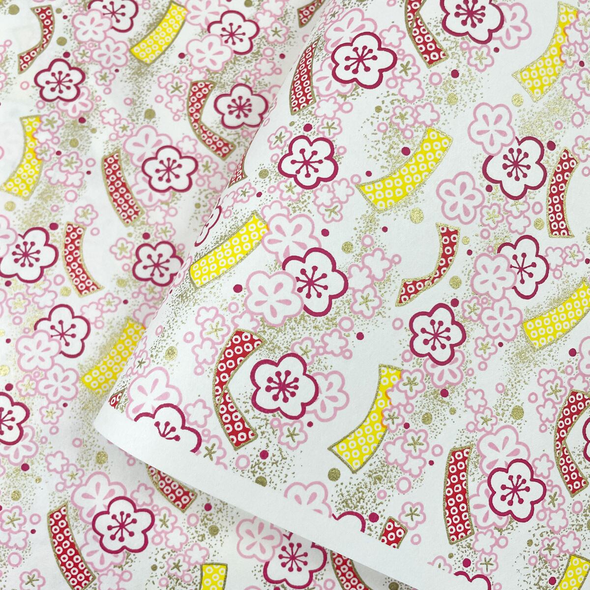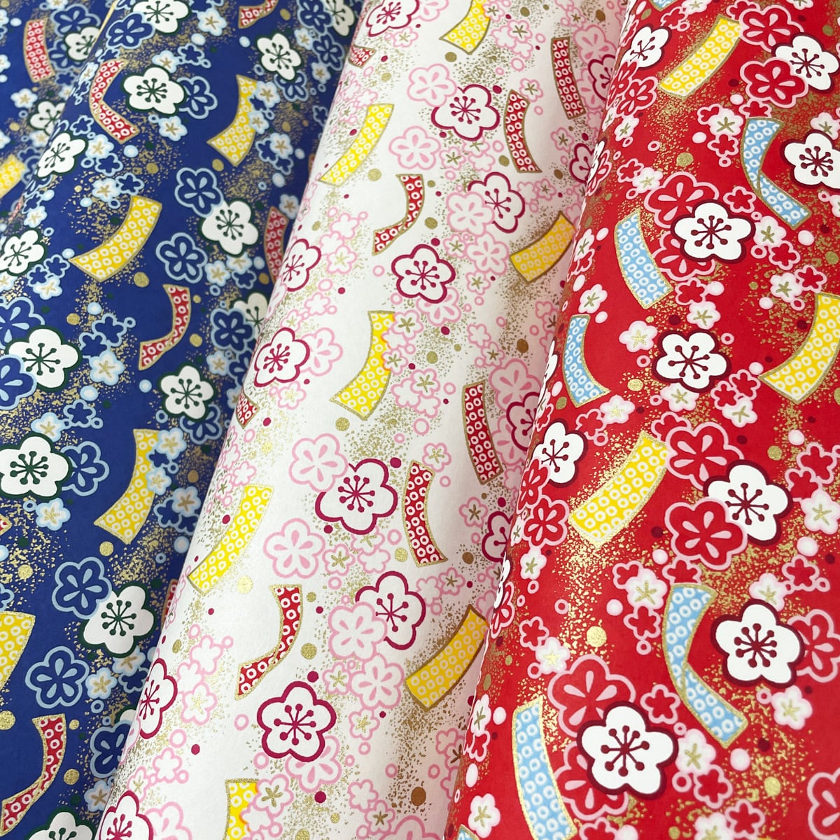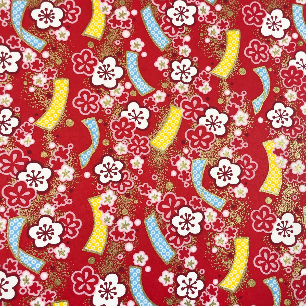 友禅和紙 鹿の子柄の短冊と梅の花 赤 青 紺 白 大判 約63x93cm 千代紙 Yuzen dyeing 119087769