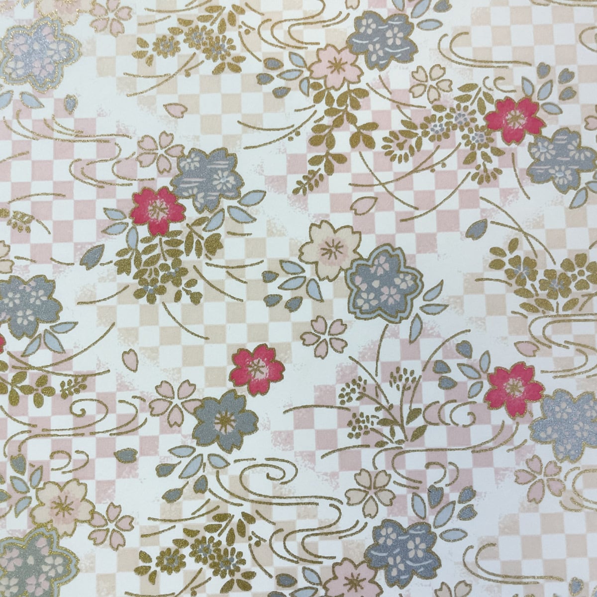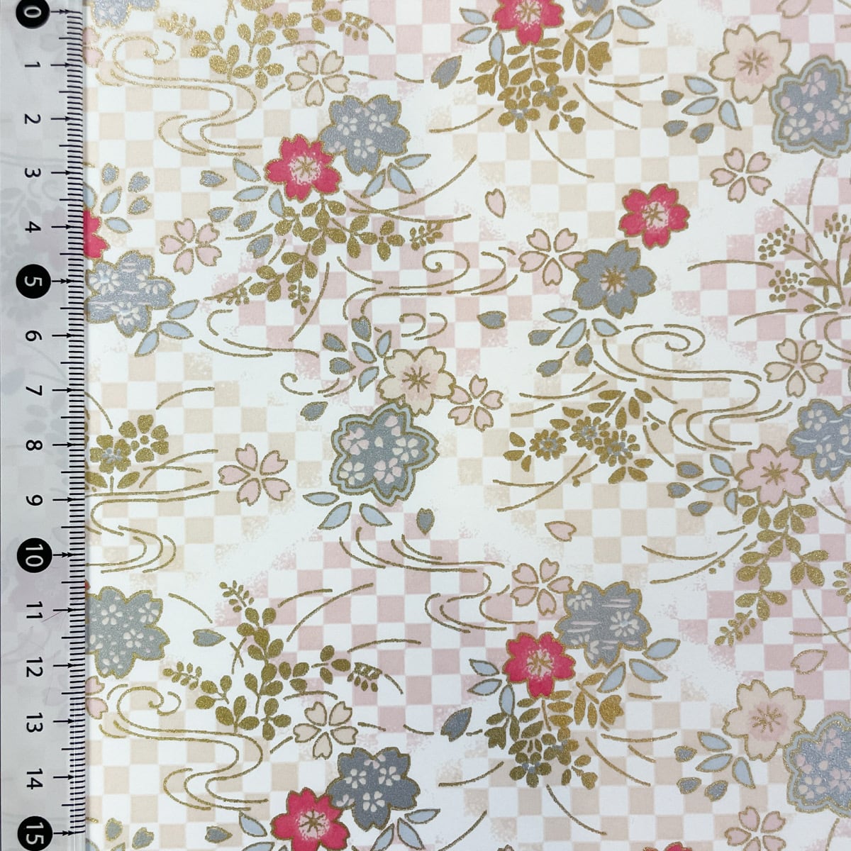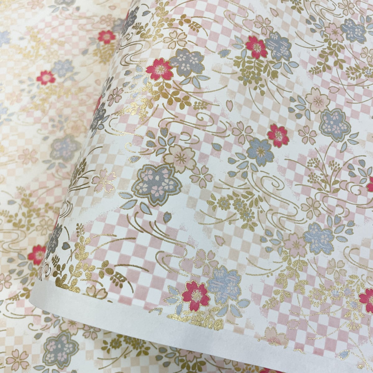 華やかな友禅和紙 市松を菱形にならべて 大人カラーの桜柄 ピンク クリーム色 金 大判 約63x95cm 千代紙 Yuzen dyeing 119890075