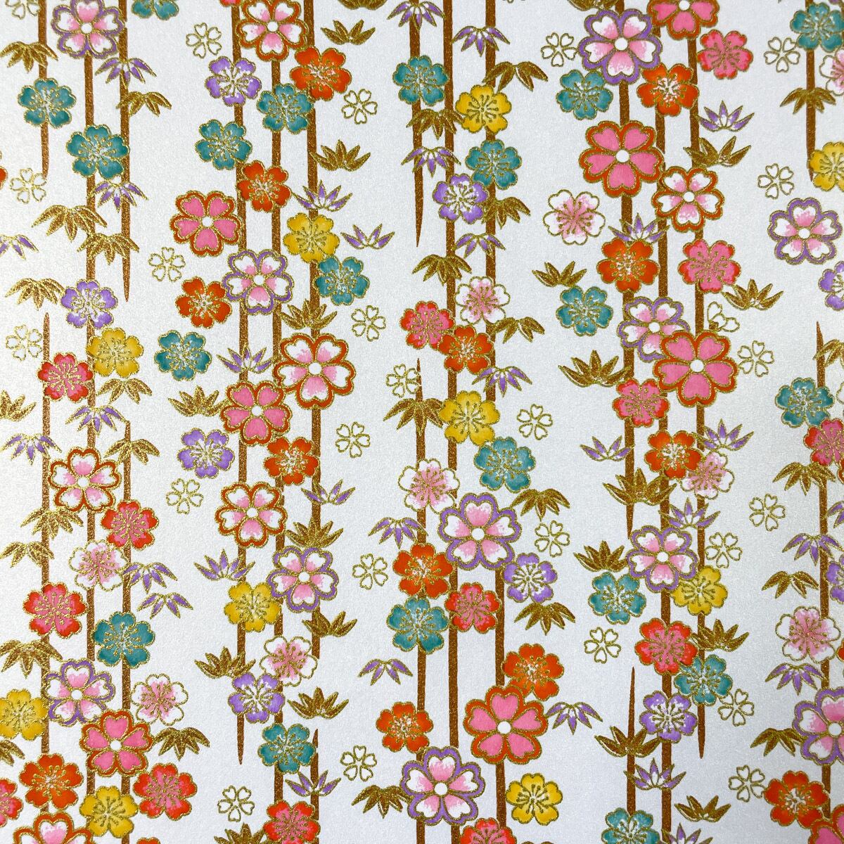 華やかな友禅紙 桜と竹 白地 爽やか 可愛い 大判 約63x93cm 千代紙 Yuzen dyeing 119890160