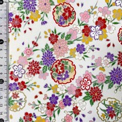 華やかな友禅紙 花輪に季節の花々 桜 菊 白地 パールホワイト 大判 約63x93cm 千代紙 Yuzen dyeing 119890218