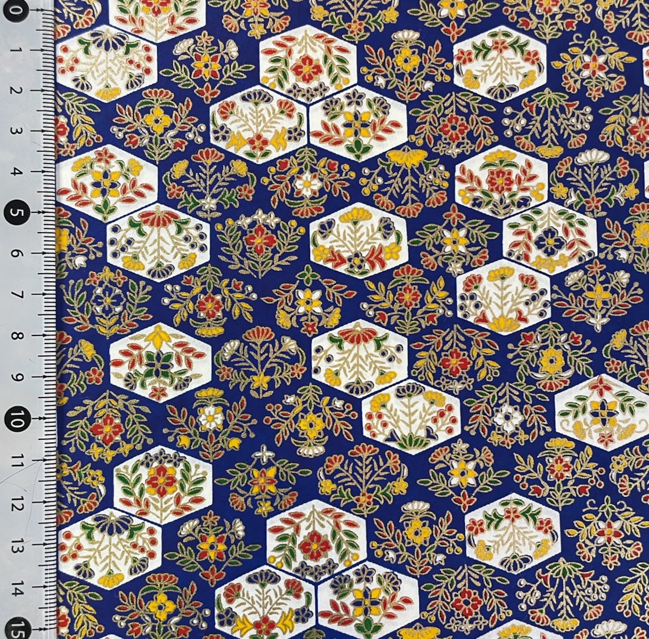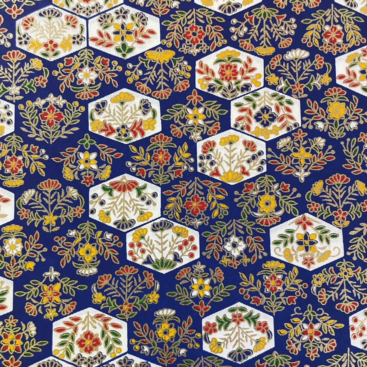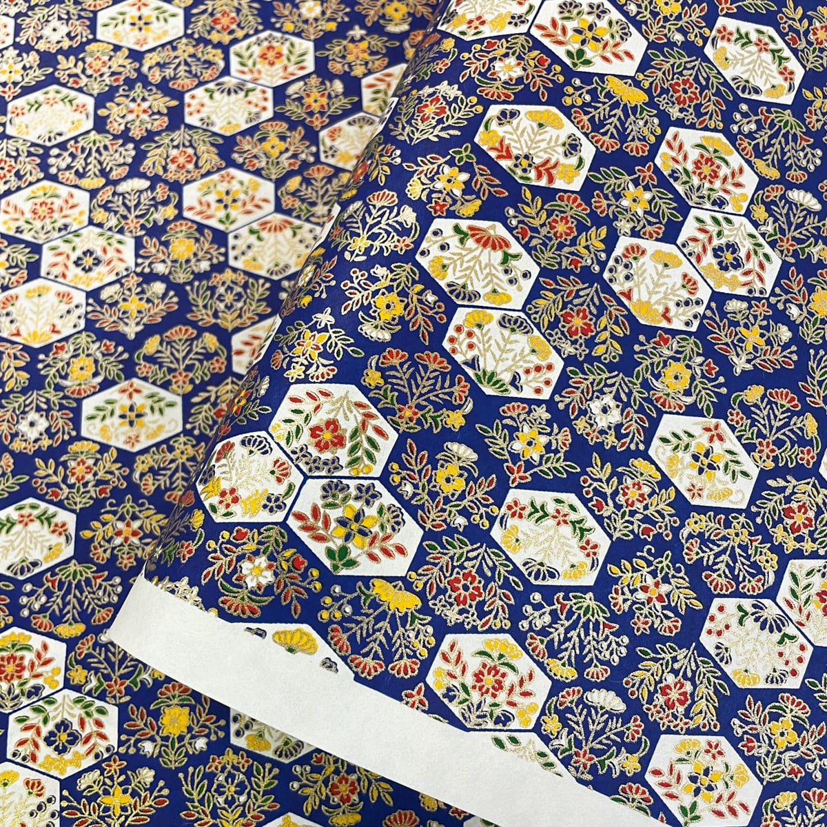 友禅和紙 六角花紋 小花 青 紺 大判 約63x93cm 千代紙 Yuzen dyeing 120219547