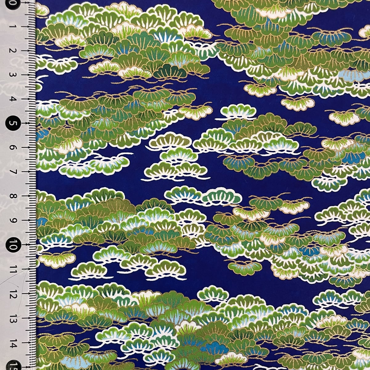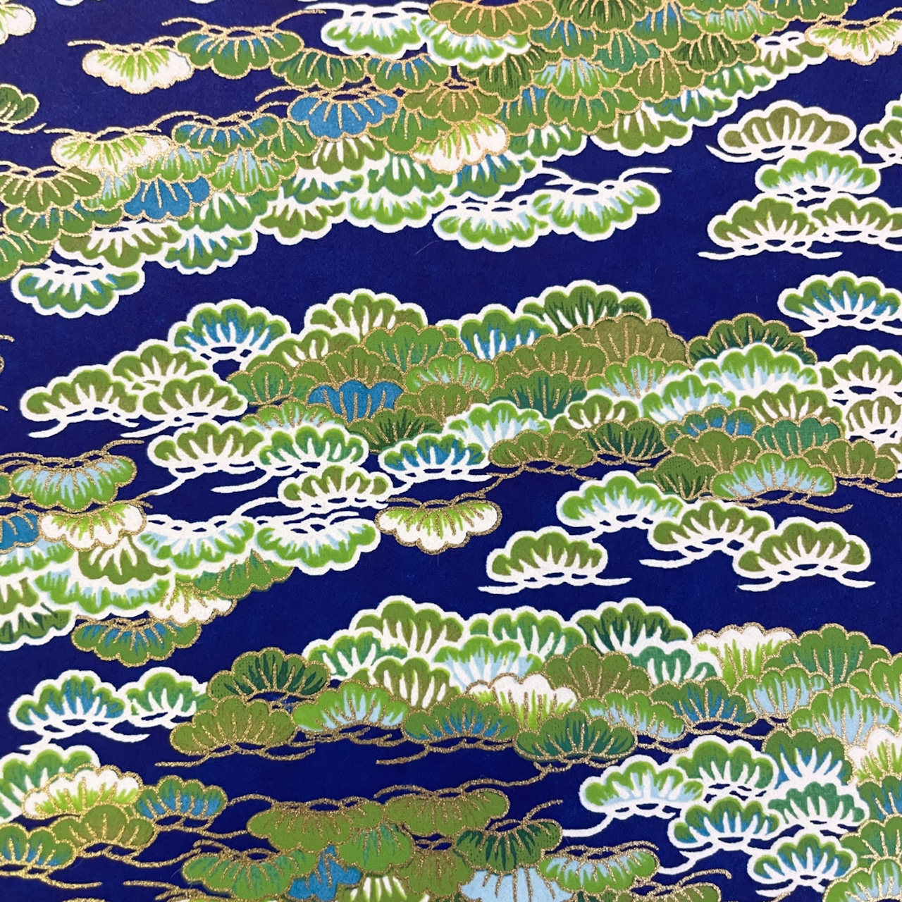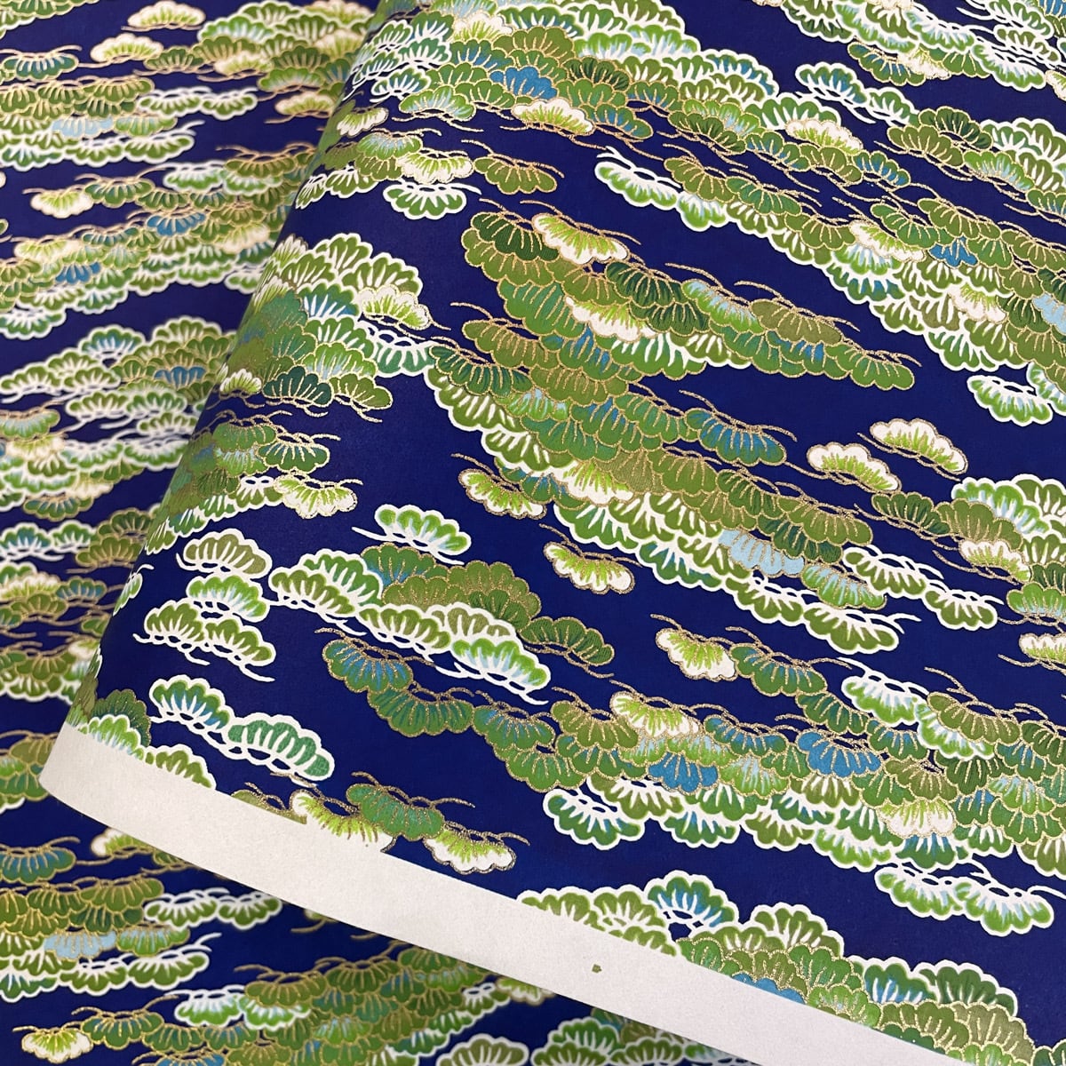 華やかな友禅和紙 豪華 紺地に松 青 大判 約63x93cm 千代紙 Yuzen dyeing 120219586