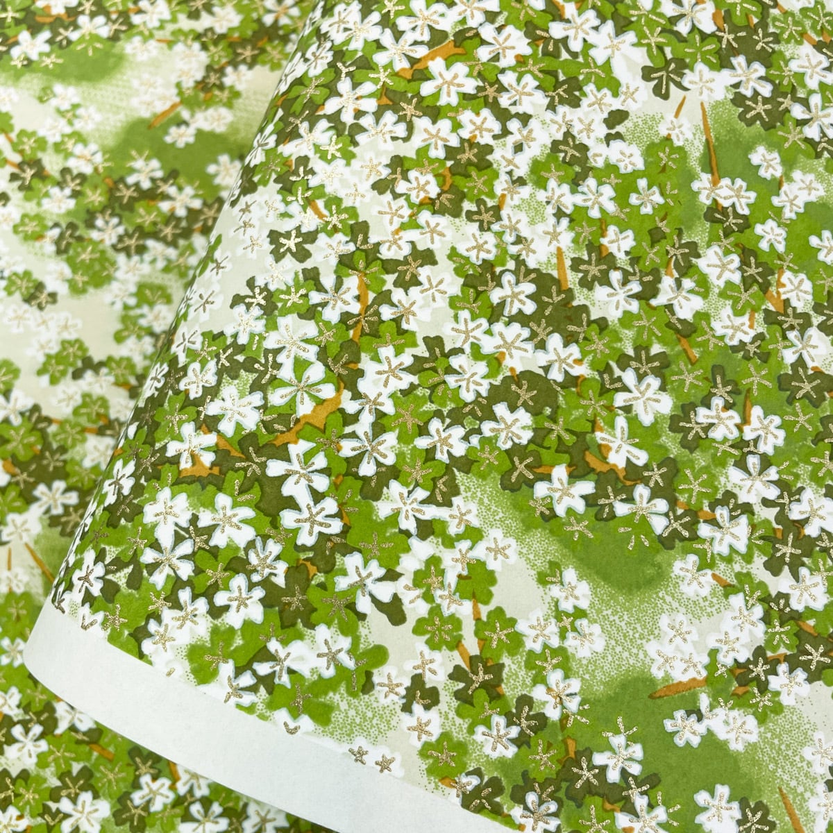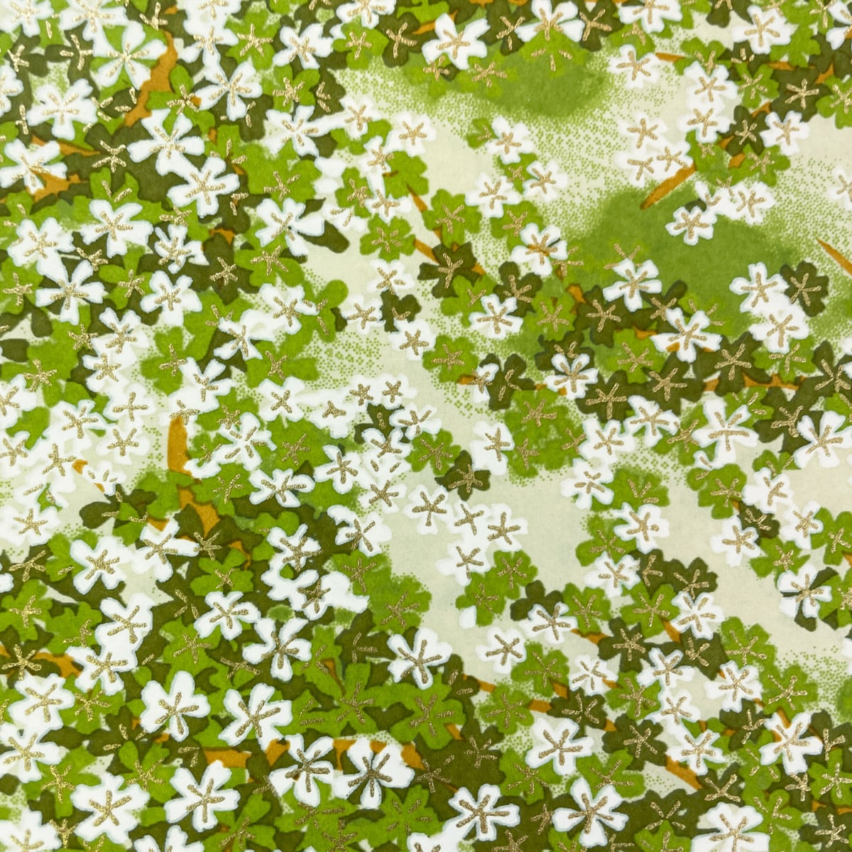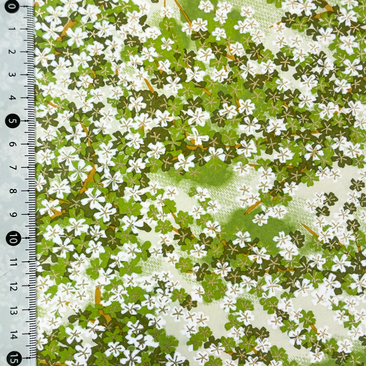 友禅和紙 桜の花々 小花 金のしべ 緑 黄緑 大判 約63x93cm 千代紙 Yuzen dyeing 120219631