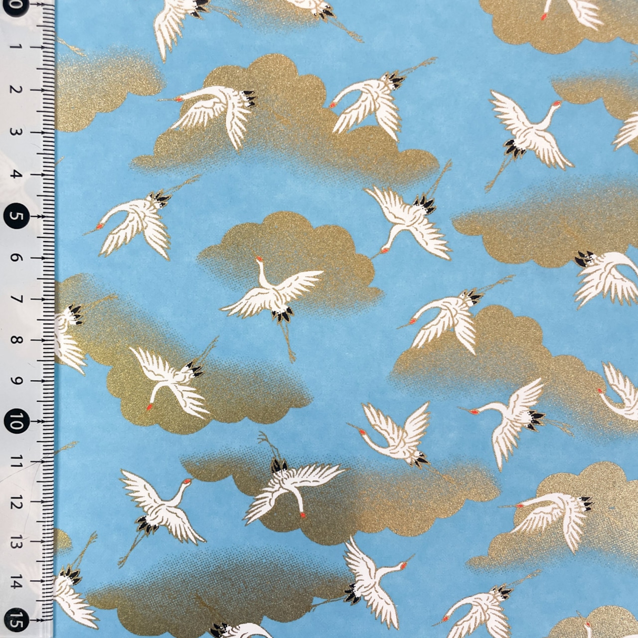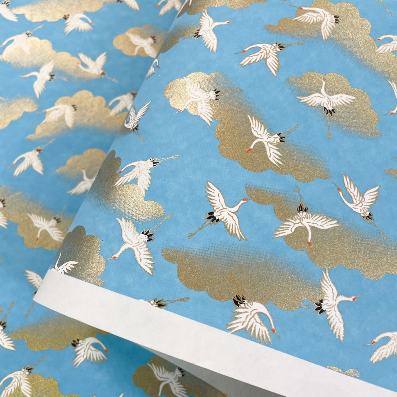 友禅和紙 金雲に鶴 水色 シンプル 爽やか お洒落 大判 約63x93cm 千代紙 Yuzen dyeing 120219768