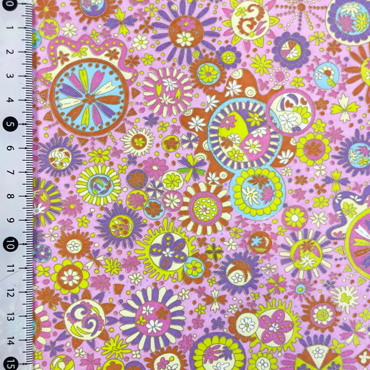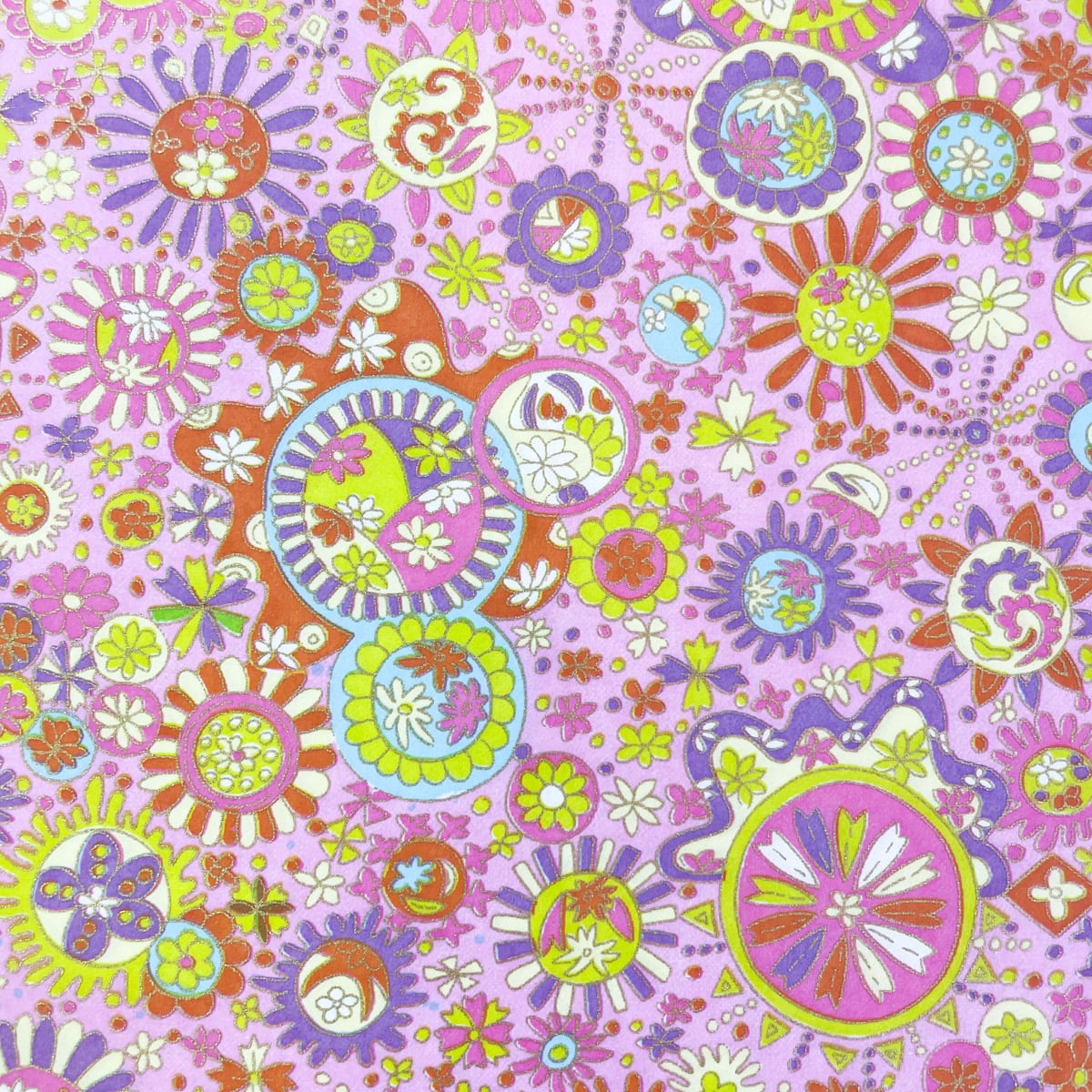 友禅和紙 ピンク地にお花のモチーフ イラスト風 楽しい 可愛い 大判 約63x93cm 千代紙 Yuzen dyeing 120219805
