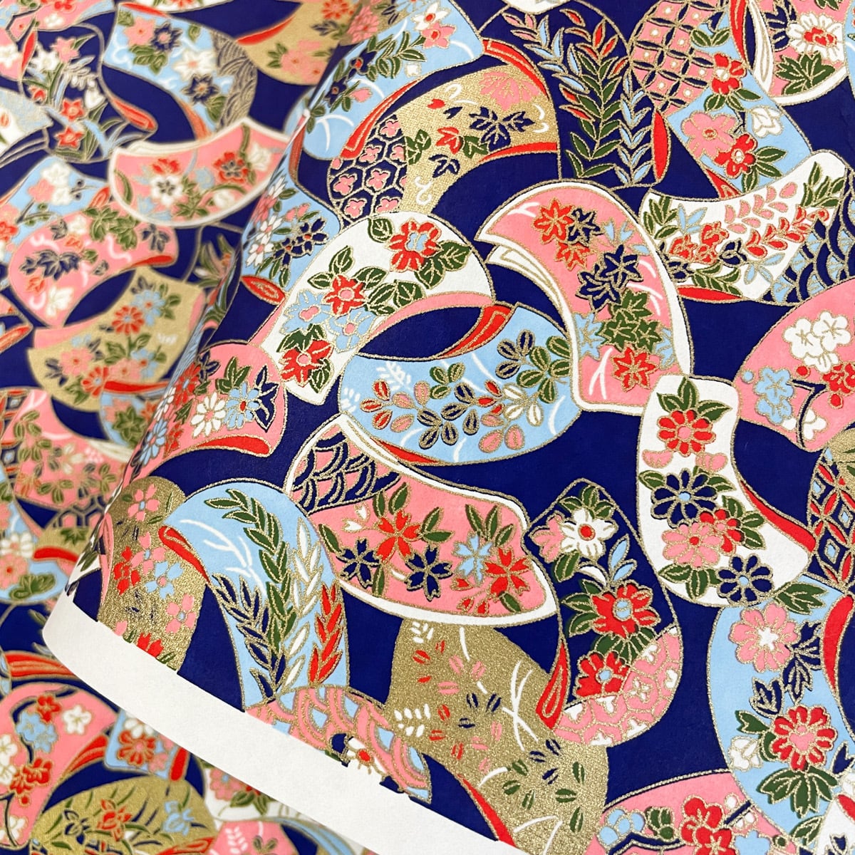 華やかな友禅和紙 優雅な花柄の帯模様 紺 紫 大判 約63x93cm 千代紙 Yuzen dyeing 120219860