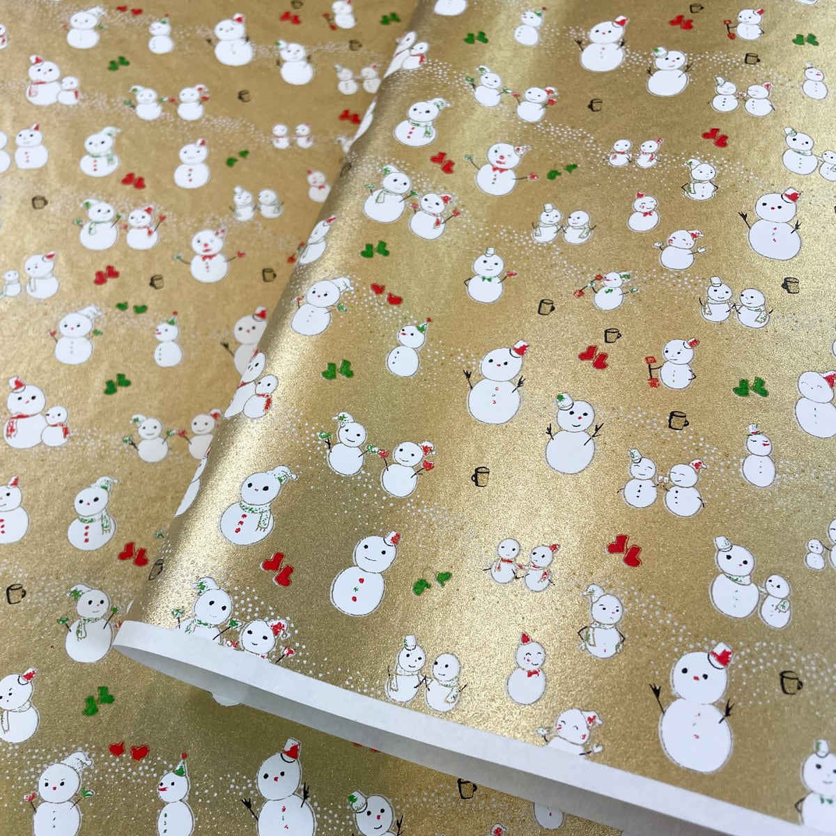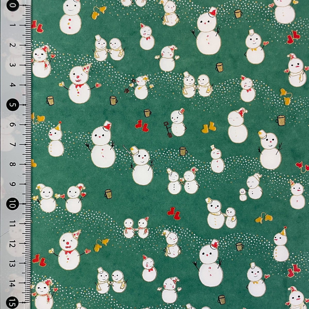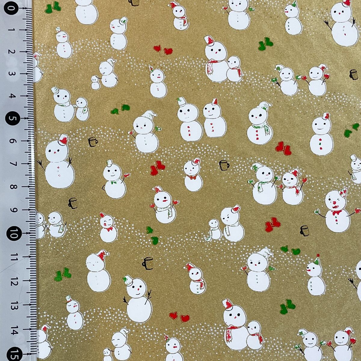 友禅和紙 可愛い雪だるま スノーマン 赤 緑 金 銀 大判 約63x93cm 千代紙 YUZEN dyeing 122228717