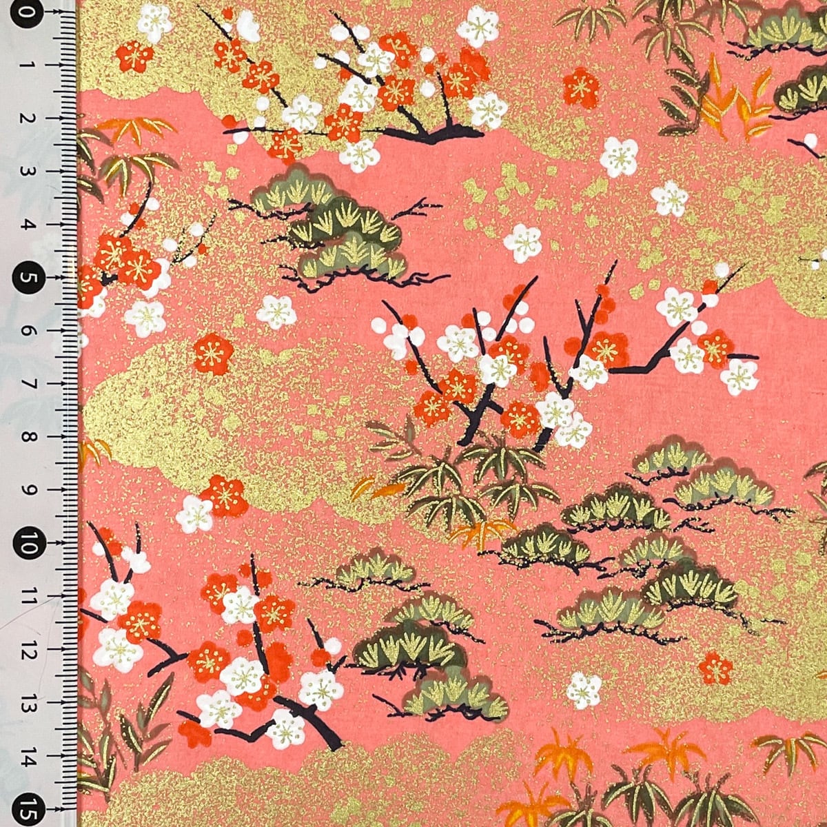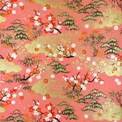 友禅和紙 金雲に可愛い松竹梅 サーモンピンク 大判 約63x93cm 千代紙 YUZEN dyeing 122718473