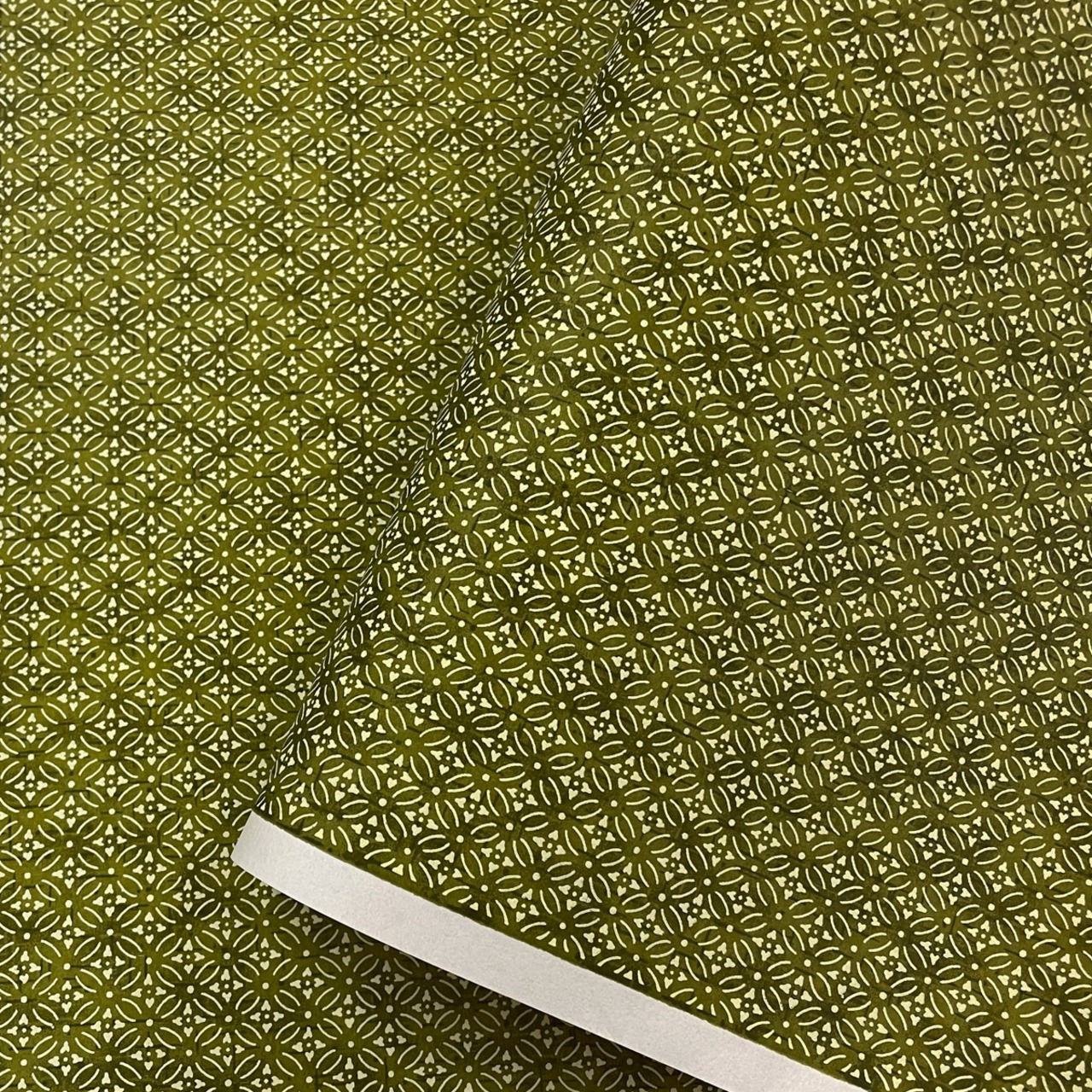 民芸風 加賀友禅 和紙 新小紋 七宝 緑 松葉色 大判 約63x93cm