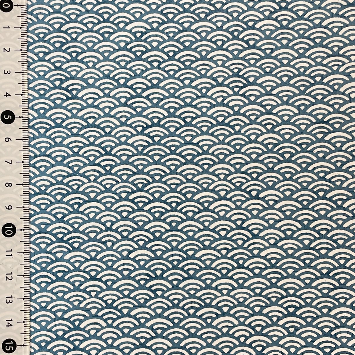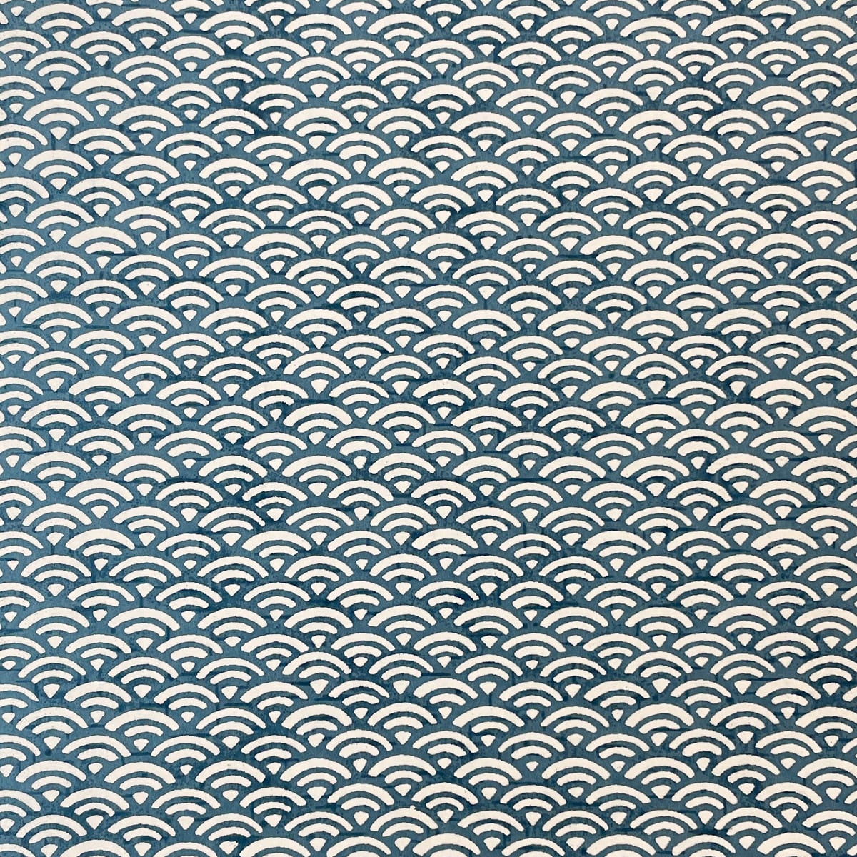 民芸風 加賀友禅 和紙 新小紋 青海波 青 水色 大判 約63x93cm