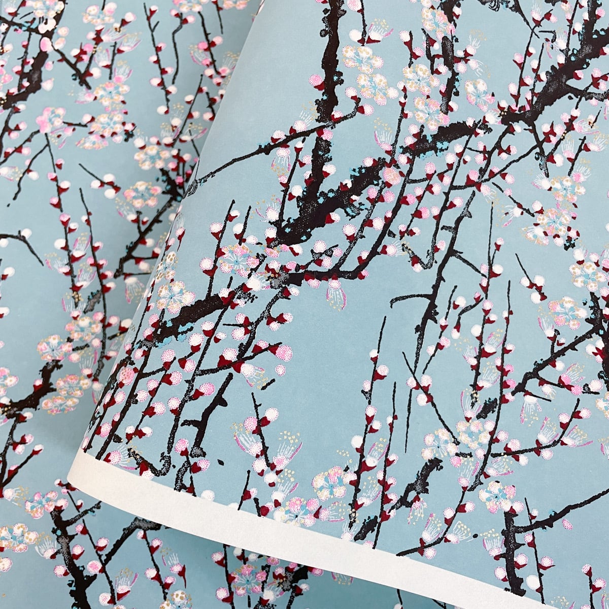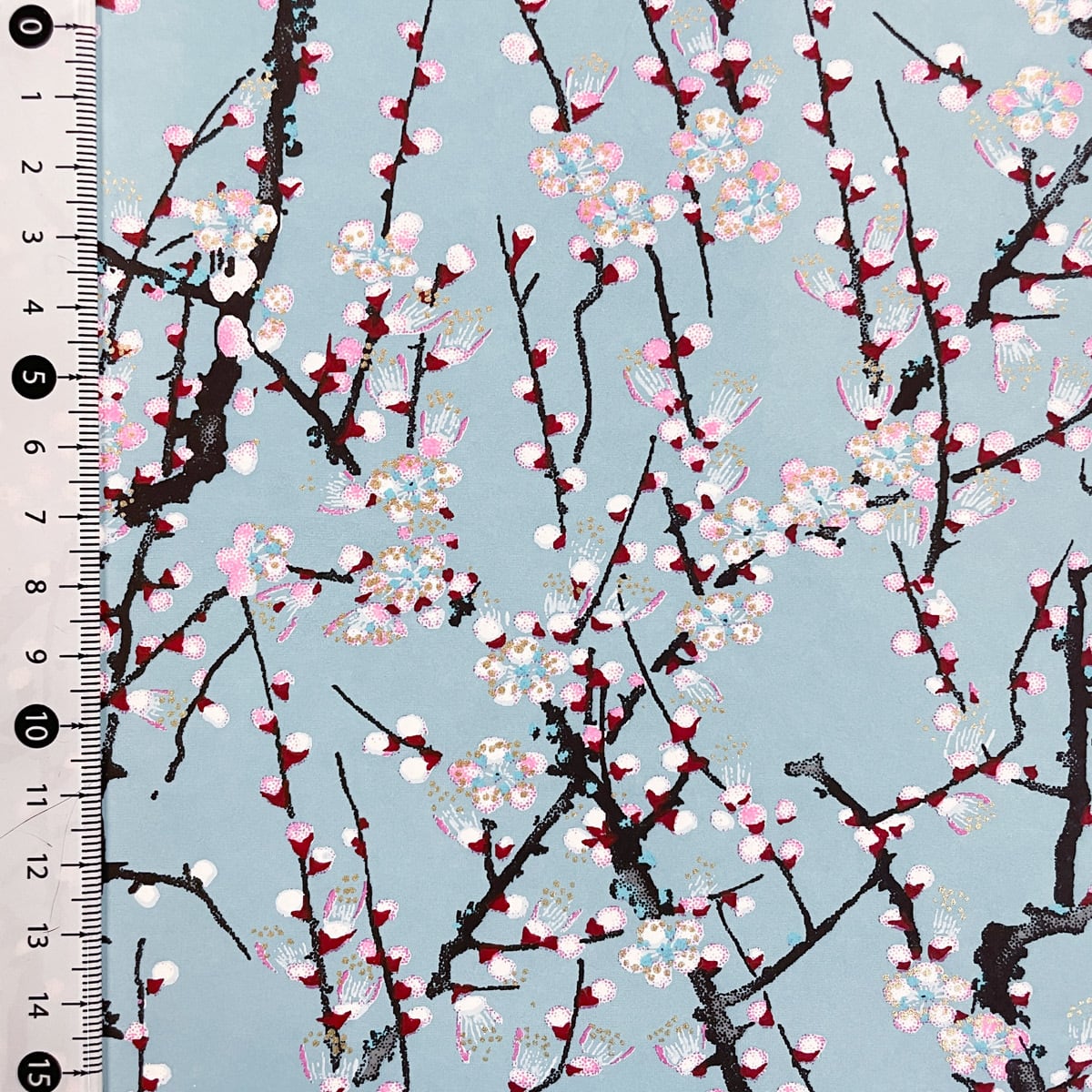 華やかな友禅和紙 豪華 水色地に 梅の木 白梅 大判 約63x93cm 千代紙 Yuzen dyeing
