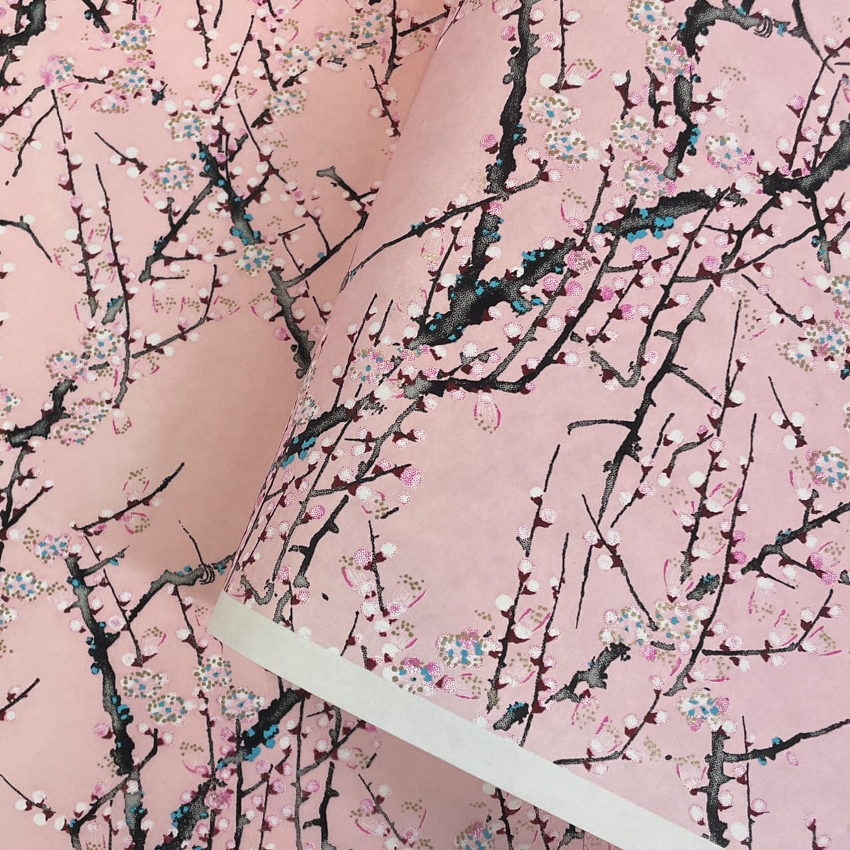 華やかな友禅和紙 豪華 ピンク 桃色地に 梅の木 白梅 大判 約63x93cm 千代紙 Yuzen dyeing