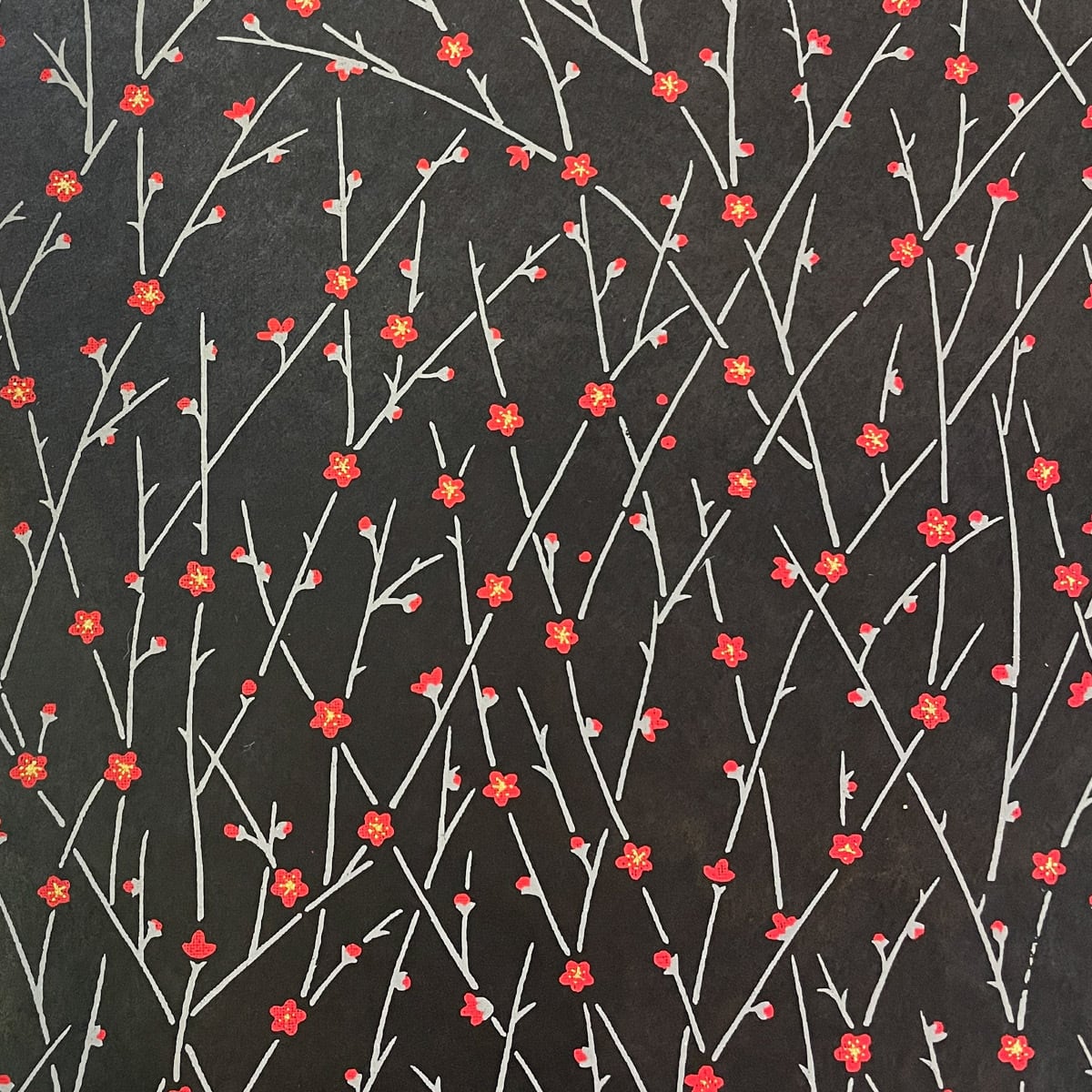 友禅和紙 黒地に赤の小花 個性的 大判 約63x93cm 千代紙 YUZEN dyeing 126506930