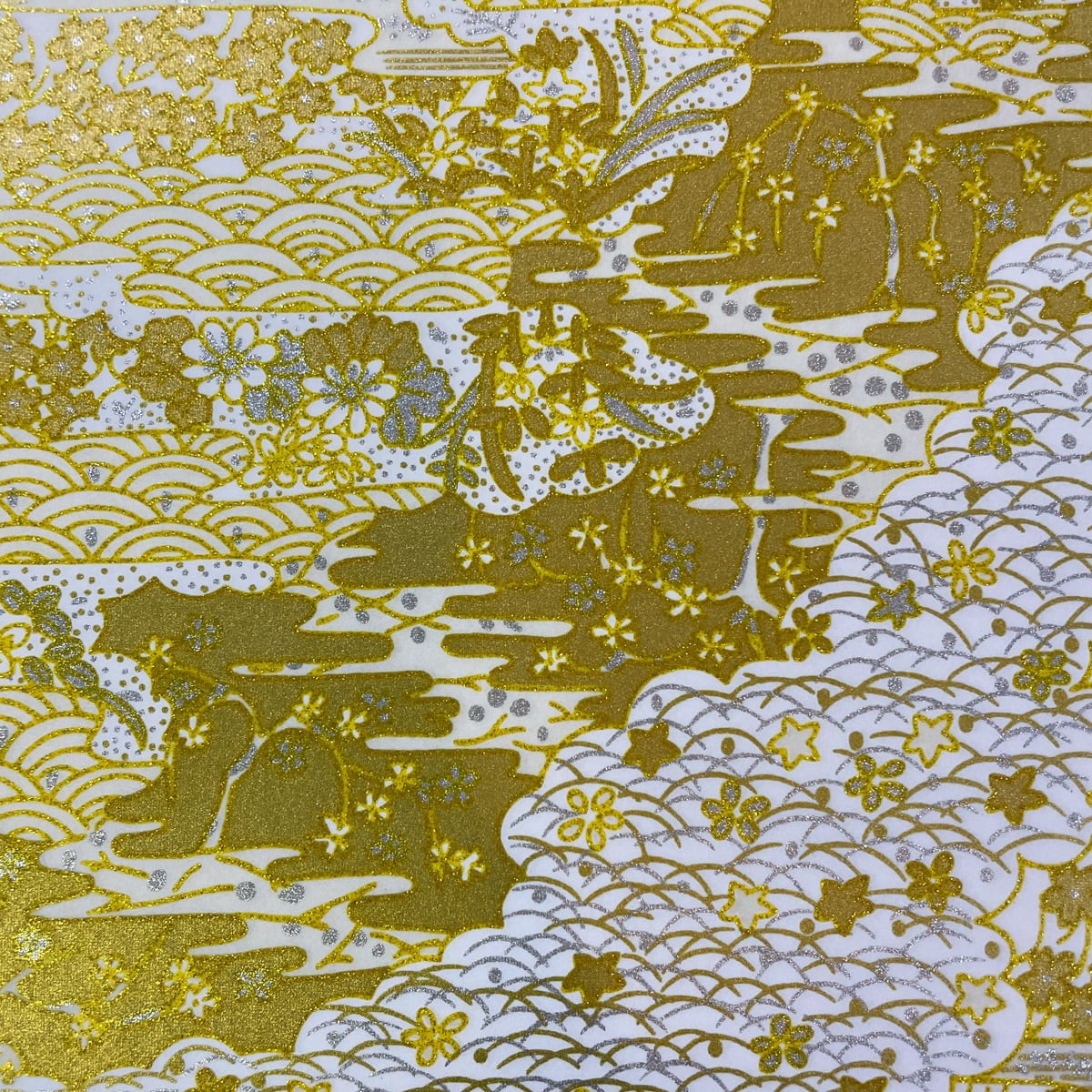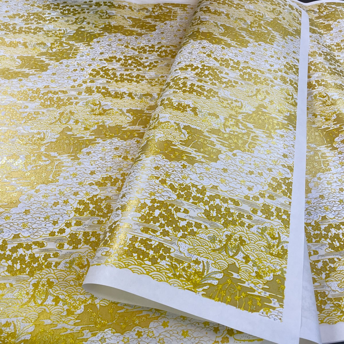 友禅和紙 金のラメ 桜と草花 朽木紋様 白地 豪華 大判 約63x93 cm 千代紙 YUZEN dyeing 126507168